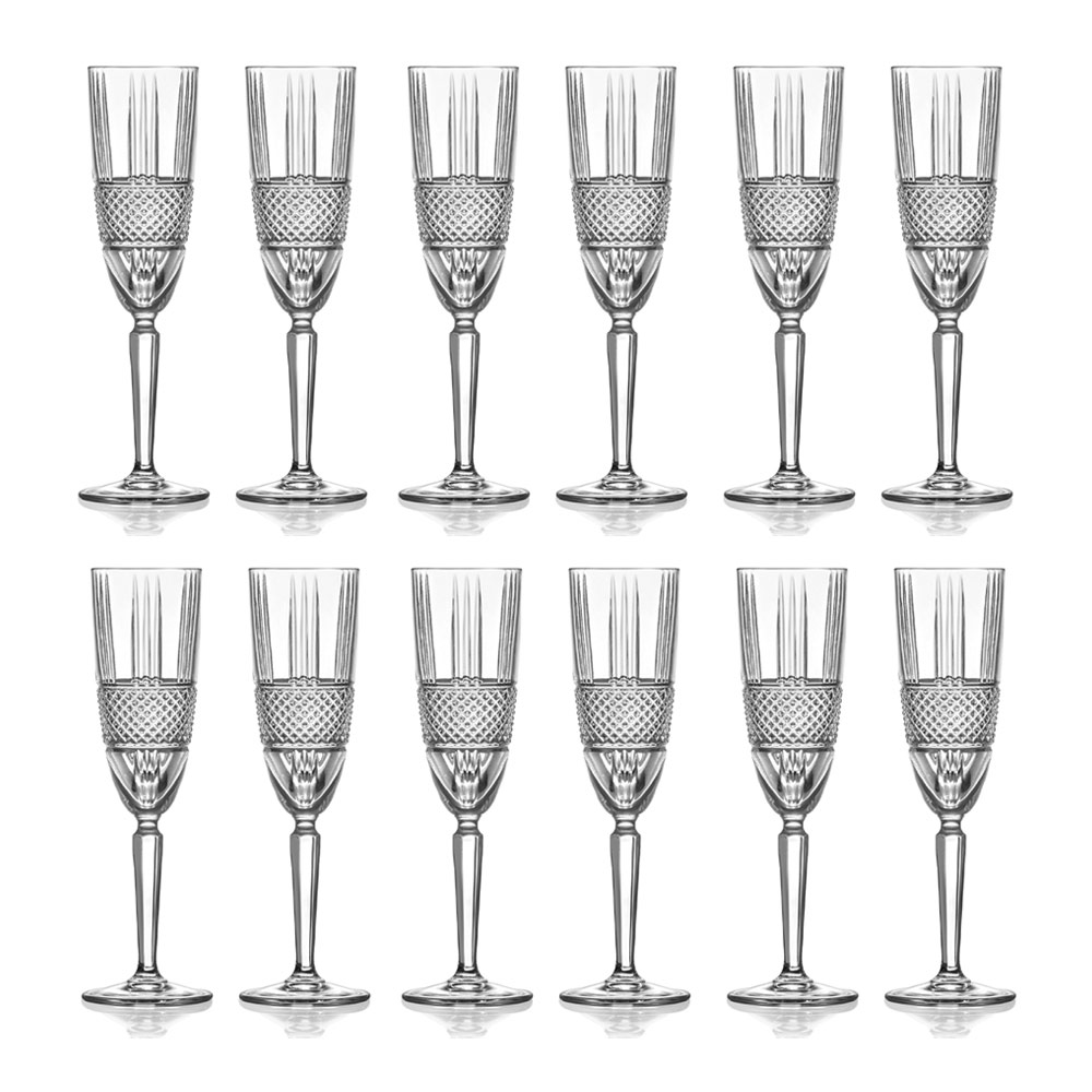Sada flétnových pohárů z diamantu broušeného eko krystalu, 12 kusů vyrobených v Itálii.