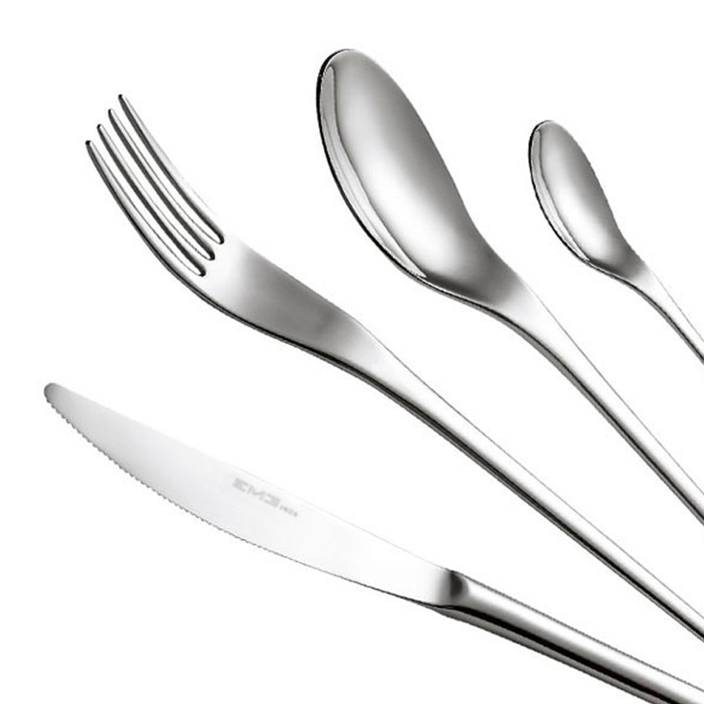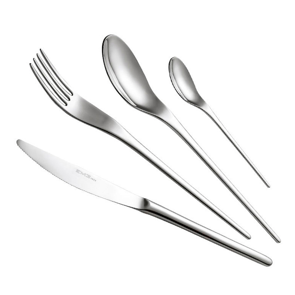 Sada příborů z leštěné nerezové oceli, štíhlý orientální design, 24 kusů vyrobené v Itálii.