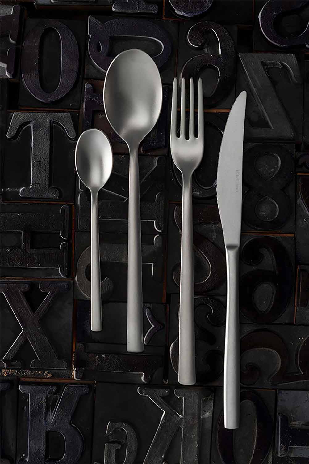 Kompletní sada příborů z pískované nerezové oceli, 24 kusů vyrobeno v italském designu.
