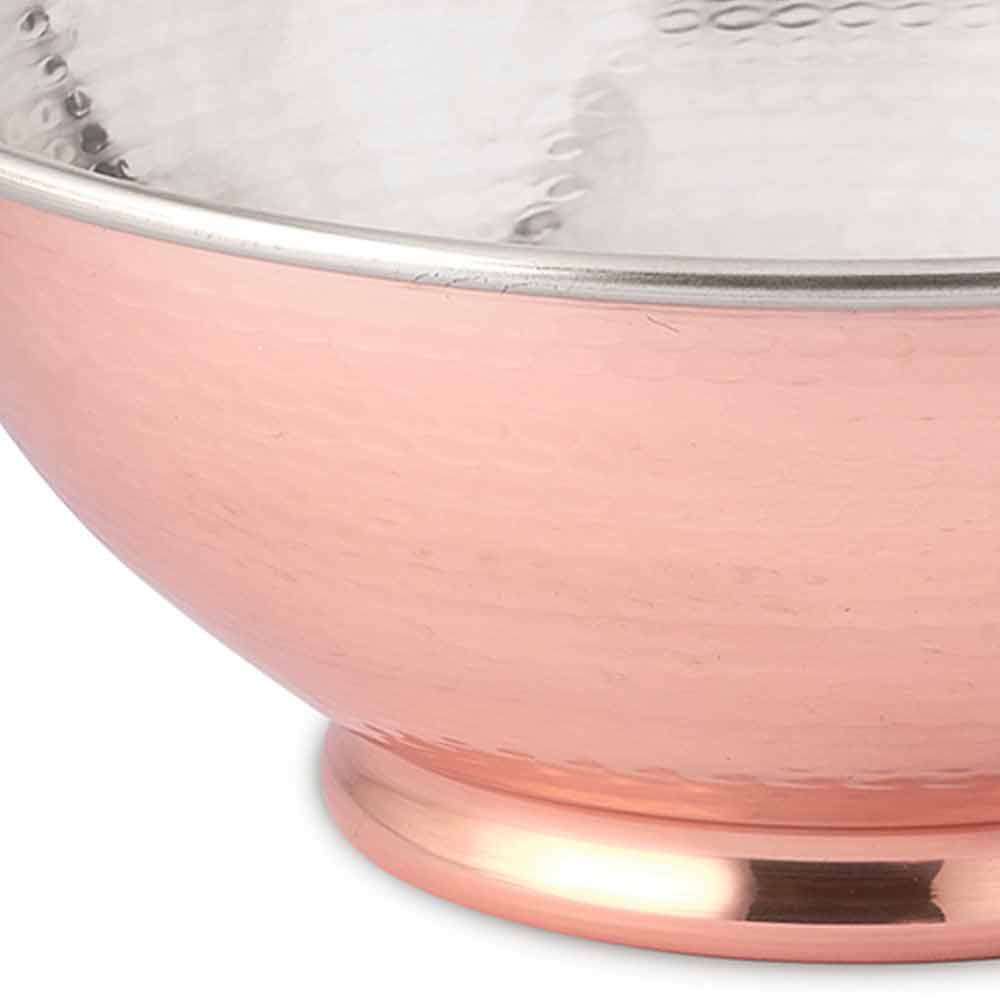 Kulatá salátová mísa z tepané leštěné mědi ručně vyráběného designu vyrobeného v Itálii.