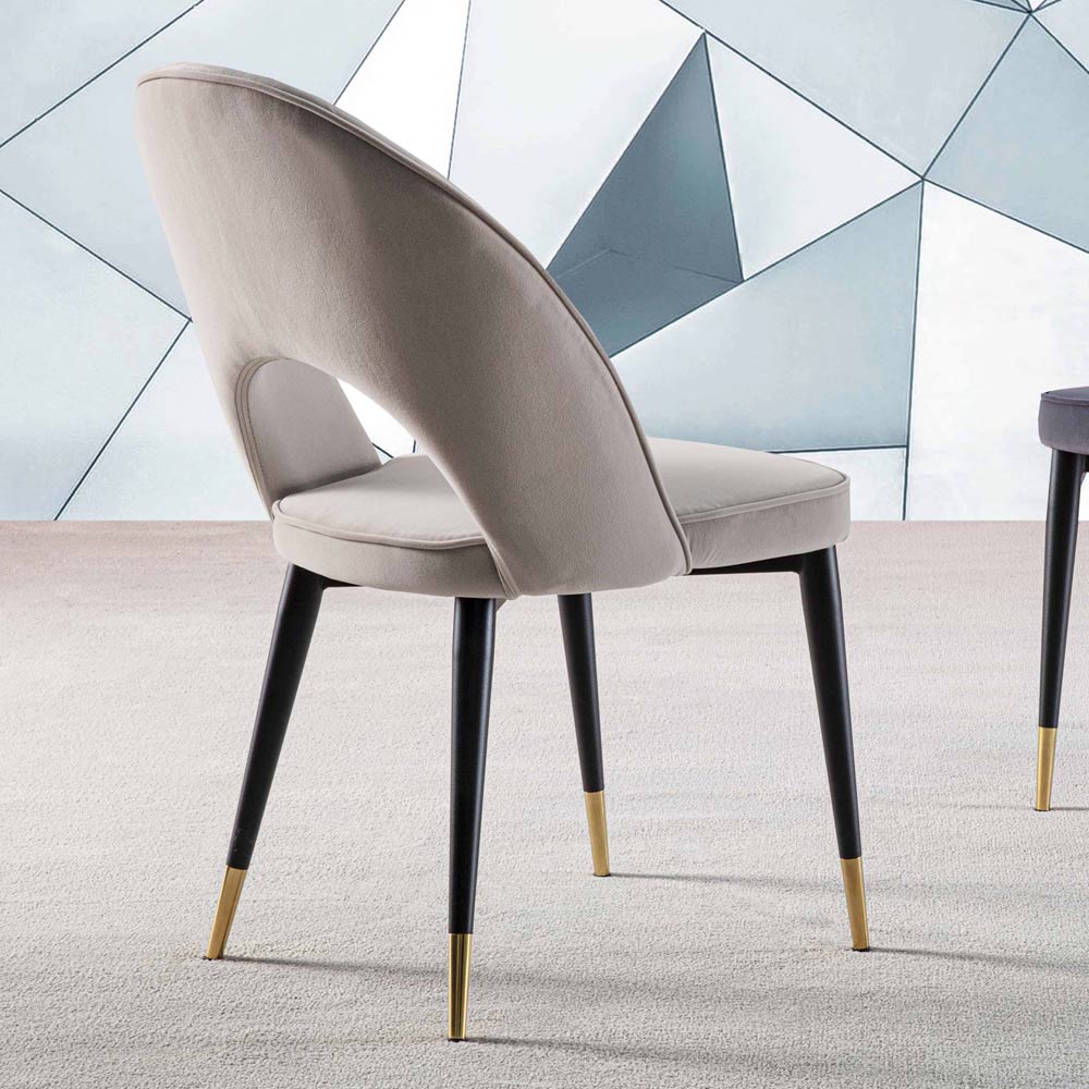 saténovými mosaznými nožkami. Neomezená elegance odlišuje tuto úžasnou židli od obklopujících prvků, jejichž design byl navržen tak, aby nabízel