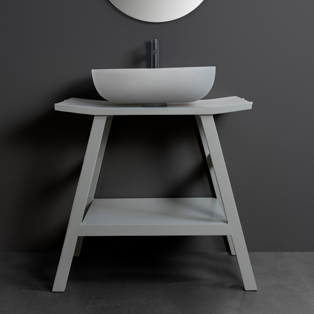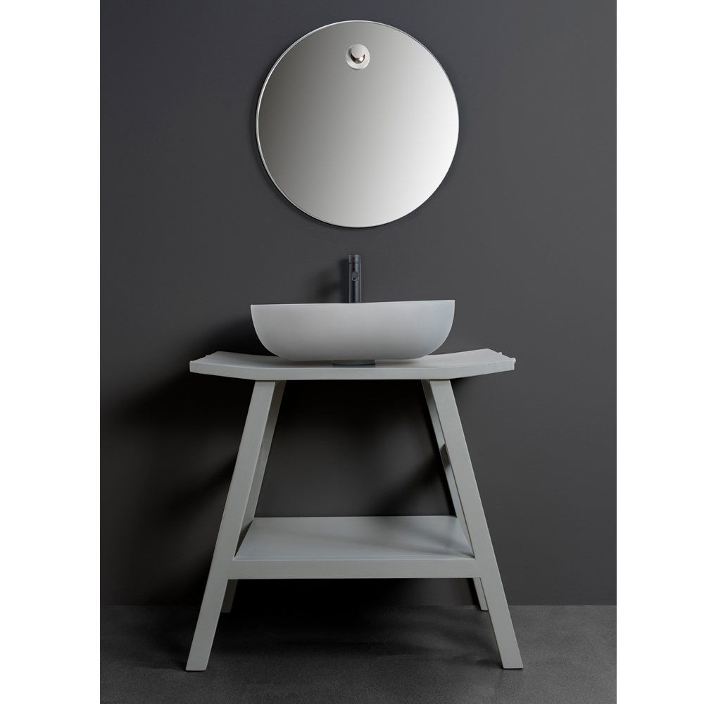 Volně stojící koupelnová skříňka z přírodního recyklovaného, matně šedě lakovaného teaku , nadčasové barevné nuance, která hovoří mezinárodním jazykem elegance, je dokonalá v jakémkoli prostředí a nenápadně na sebe upozorní. Jeho struktura se vyznačuje mírně zakřiveným tvarem horní části, který nabízí exkluzivní a rafinovaný dotek estetiky produktu. Kompletní se 4 praktickými háčky na ručníky a funkční odkládací policí .