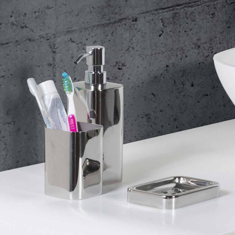 Koupelnové doplňky na pracovní desku z chromované nerezové oceli.