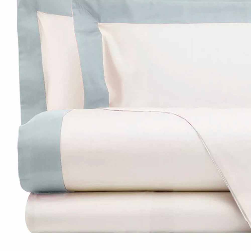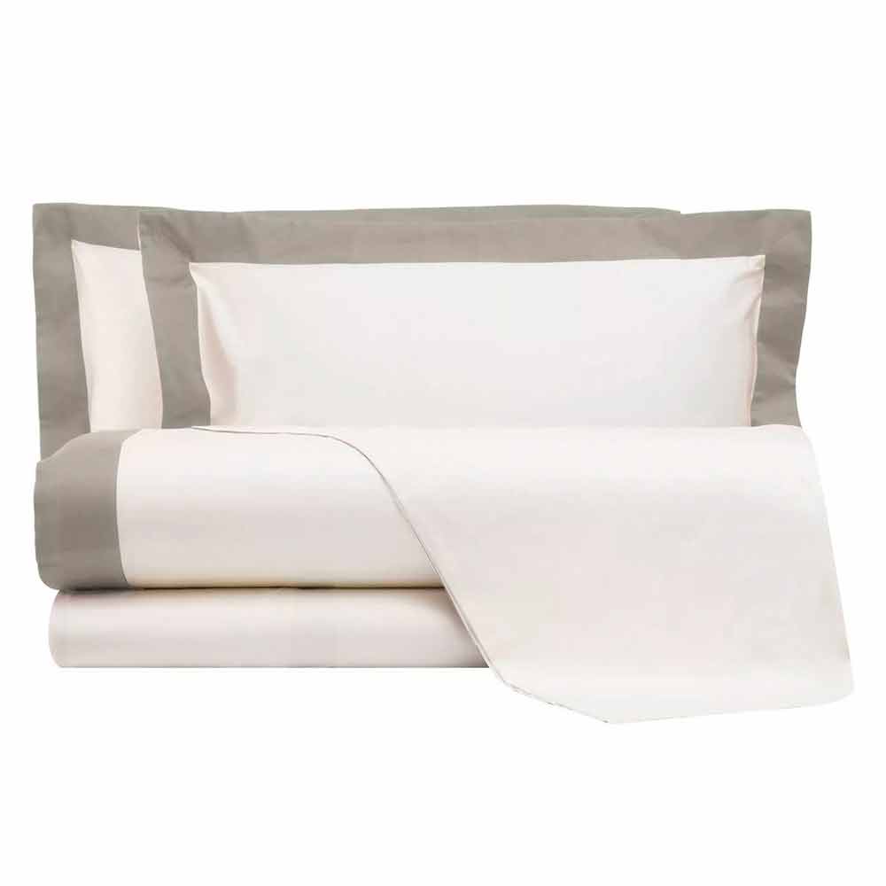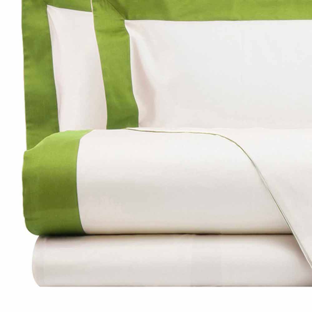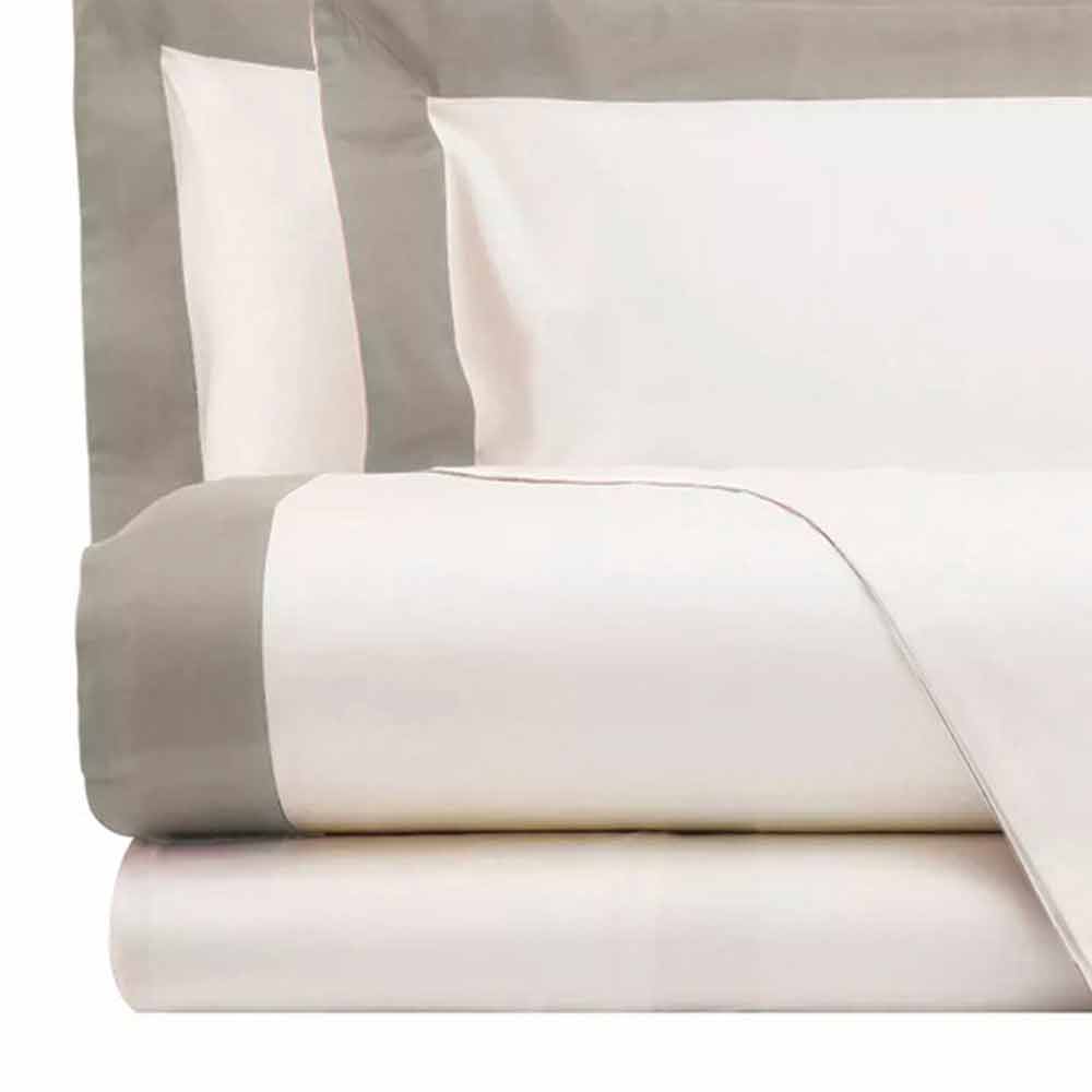 Kompletní s listy ze slonoviny s kontrastním okrajem různých barev pro manželskou postel v saténu 200 TC vyrobené v Itálii.