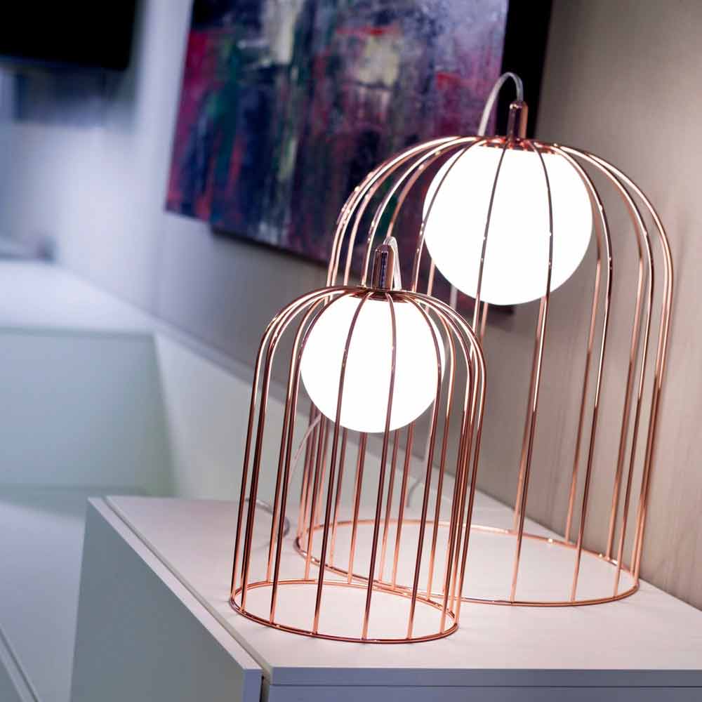 stolní lampa Selene Kluvì v kovové kleci vyrobené v Itálii