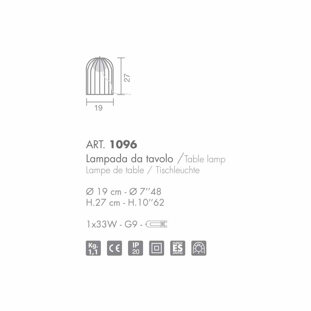 Kluvì je tabulka lampa skládá z kovové klece a koule na mléčně bílé foukaného skla. Povrchová úprava: leštěný měď; připravené pro ‚utiizzo 1 žárovky 33W - G9.
