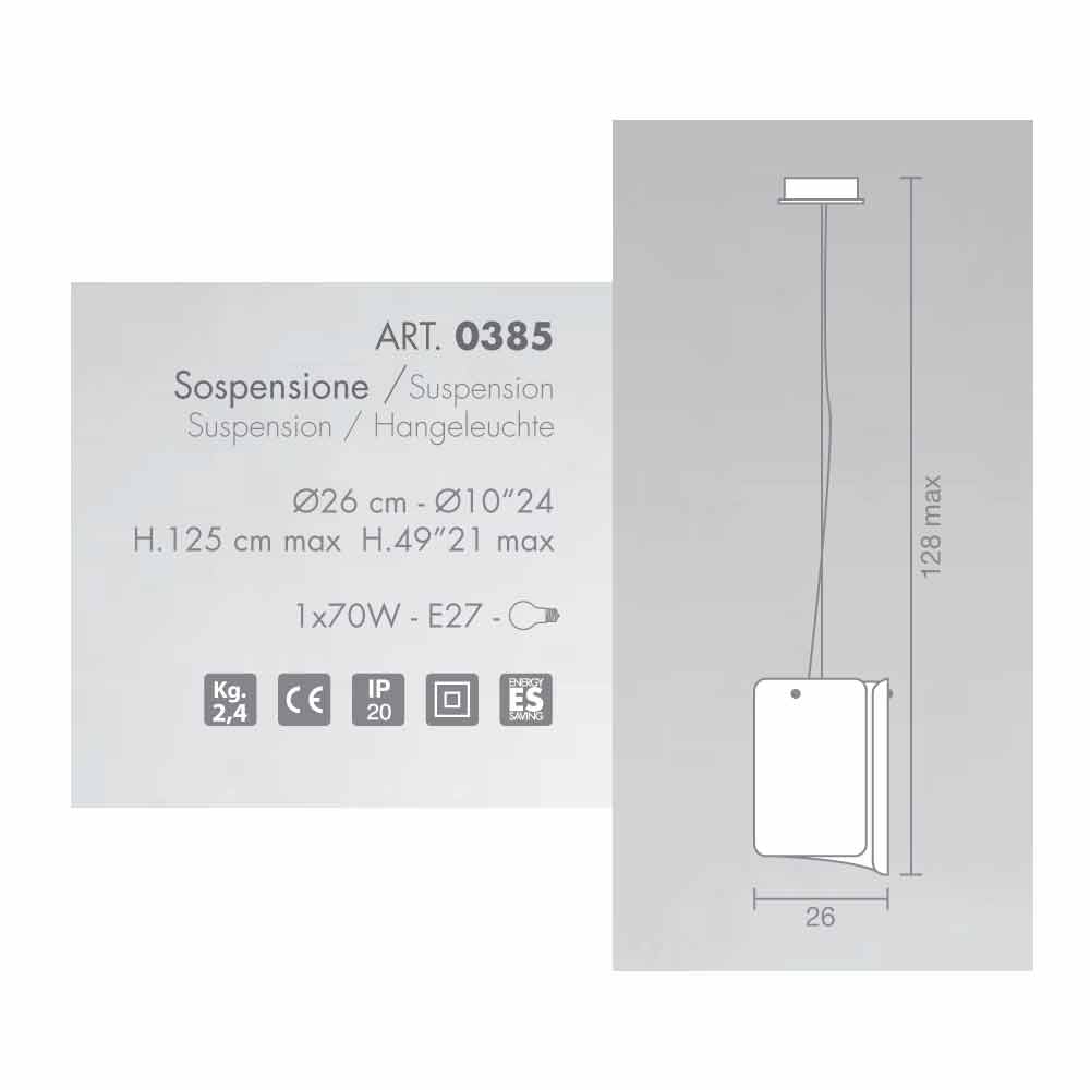 Papyrus je neuvěřitelná kolekce bohatý a univerzální, který shromažďuje všechny typy svítidel rozdělených do několika variacích tvaru, velikosti a počtu světelných zdrojů. Difuzor, se zvláštním tvarem; extra čirého skla a je k dostání v různých povrchových úpravách. Připravené pro ‚využití 1 E 27 70W žárovka (není součástí balení).