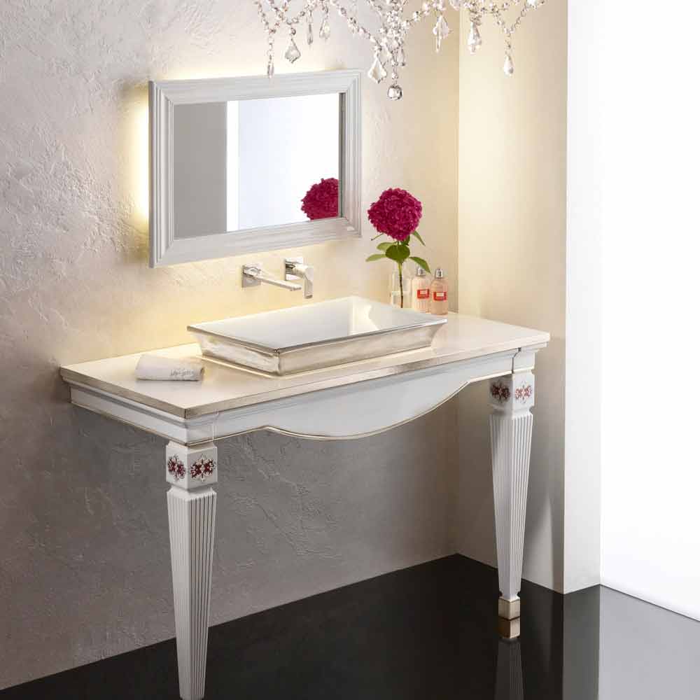 Semirecessed koupelna umyvadlo ručně vyráběné v Itálii v požární hlíny s lesklou bílou uvnitř a rafinované v platině na vnější straně.