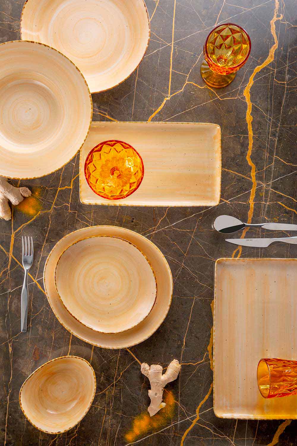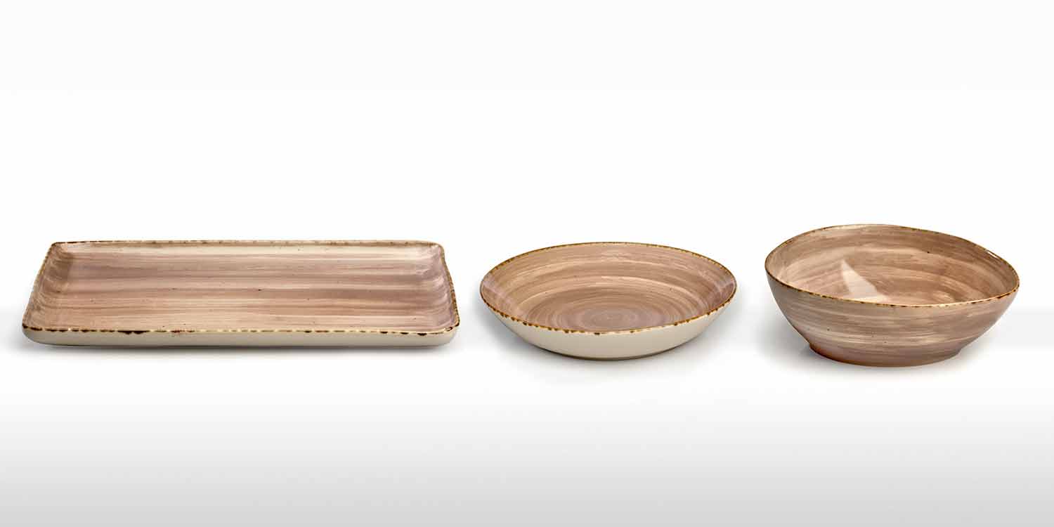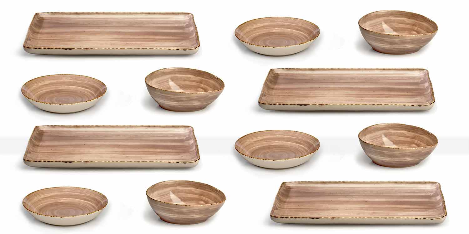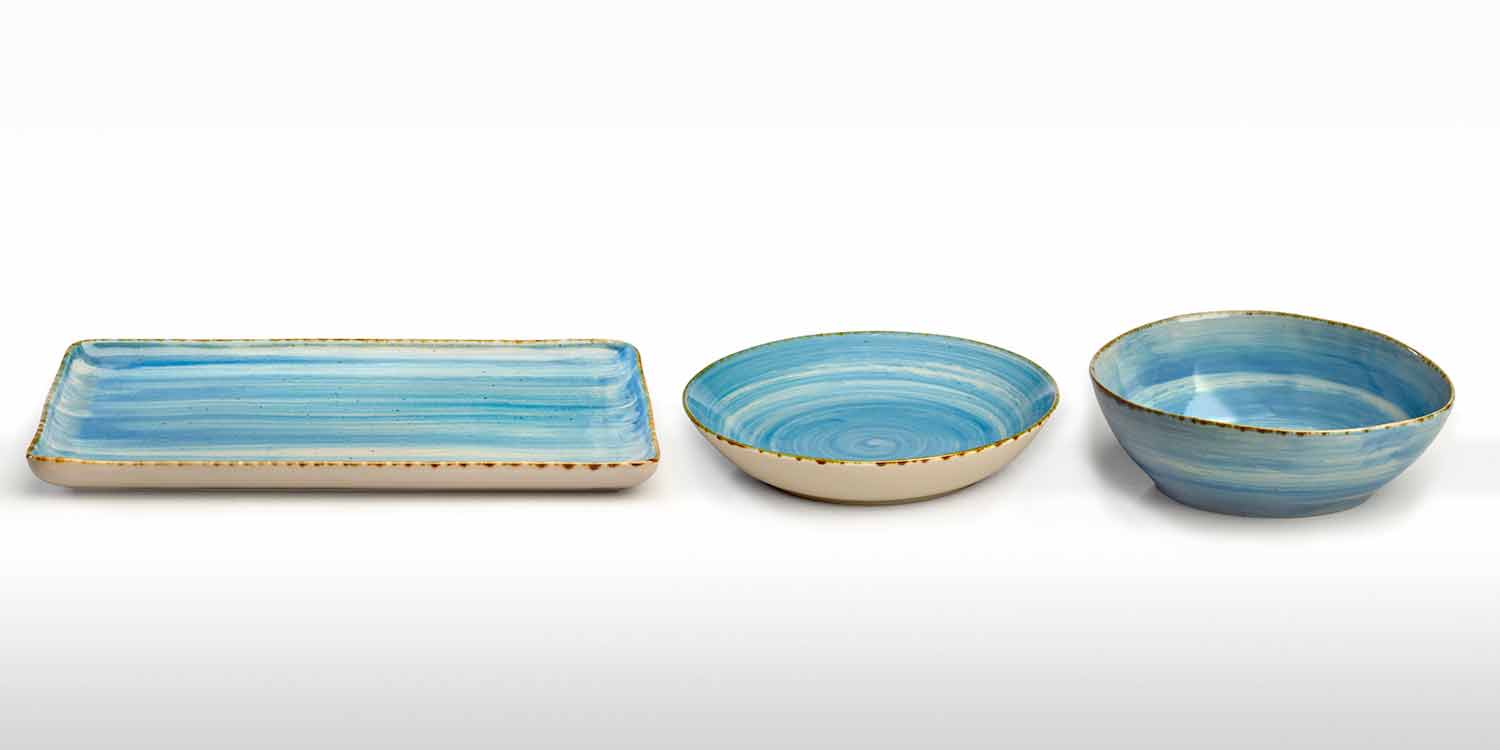 - Originalita : nepravidelné tvary, dekorace s nepřesnými tahy štětcem a skvrnitým efektem a ručně malované a zastaralé hrany zvýrazňují rustikální a zemitý styl sbírky. Každý rozdíl mezi jedním kusem a druhým je třeba považovat za další charakteristiku hodnoty a osobnosti, díky čemuž je každý kus jedinečný.
