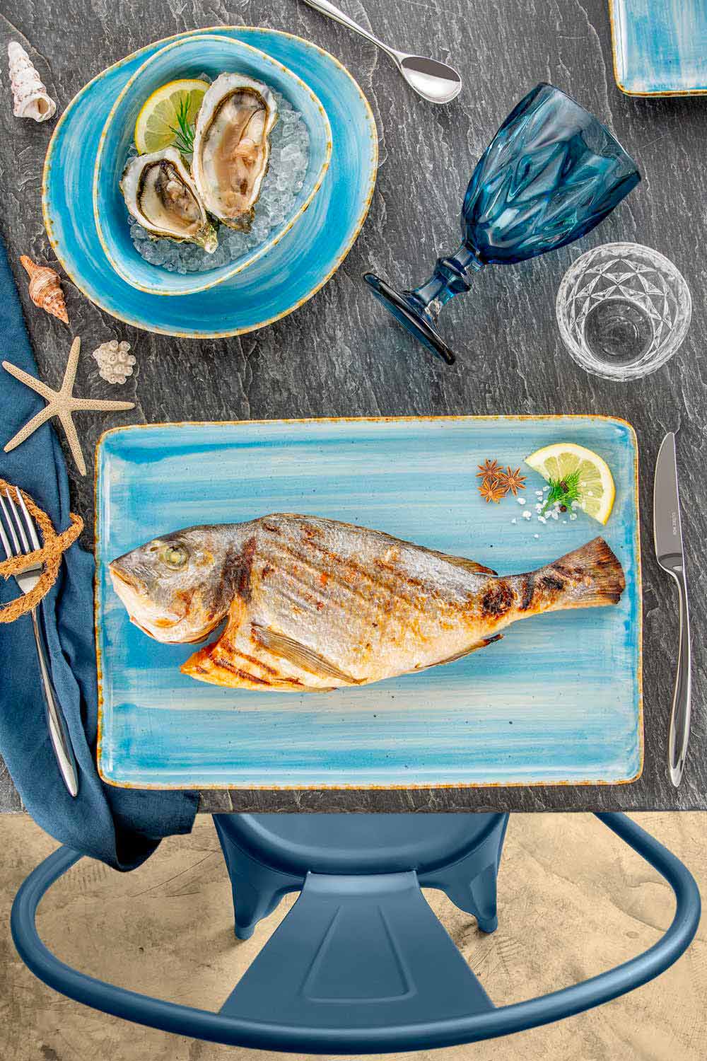 - n.4 Obdélníková deska 35 x 23 cm vhodná pro předkrmy, grily, výběr masa nebo sýrů, triptychy hlavních chodů, hlavní chody s přílohami.