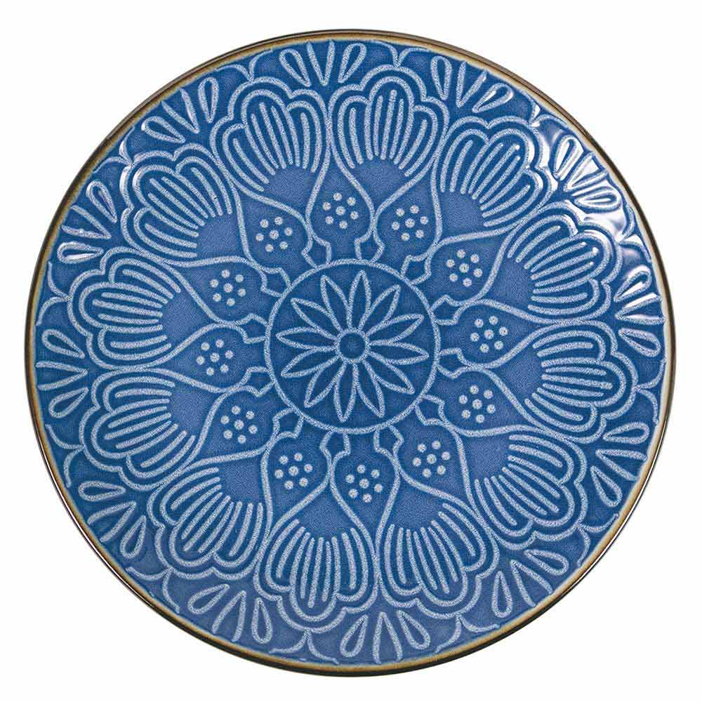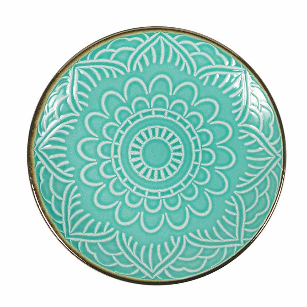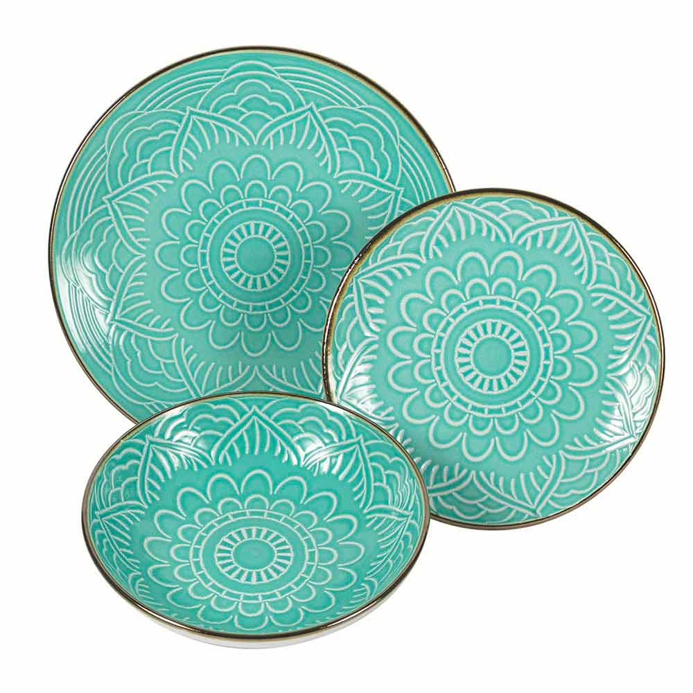 Stolní servis v šedém, tyrkysovém nebo modrém tvrdém dolomitu s reliéfními dekoracemi, 18 kusů.