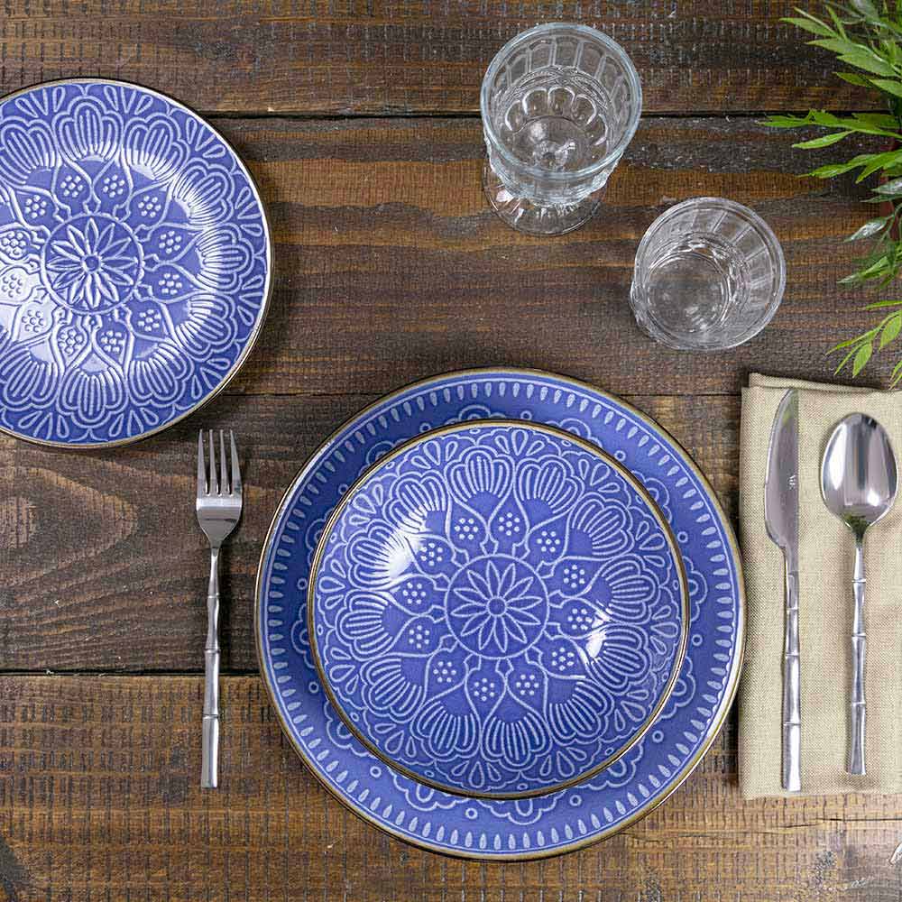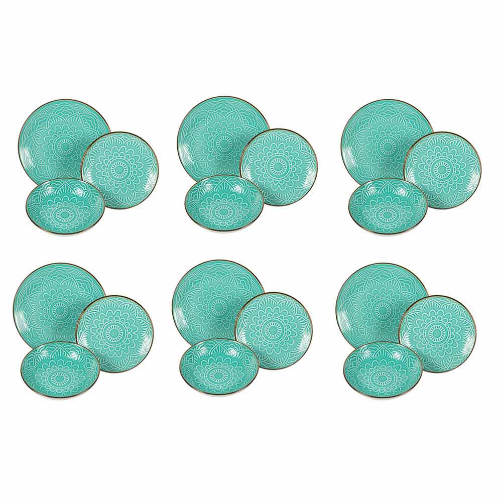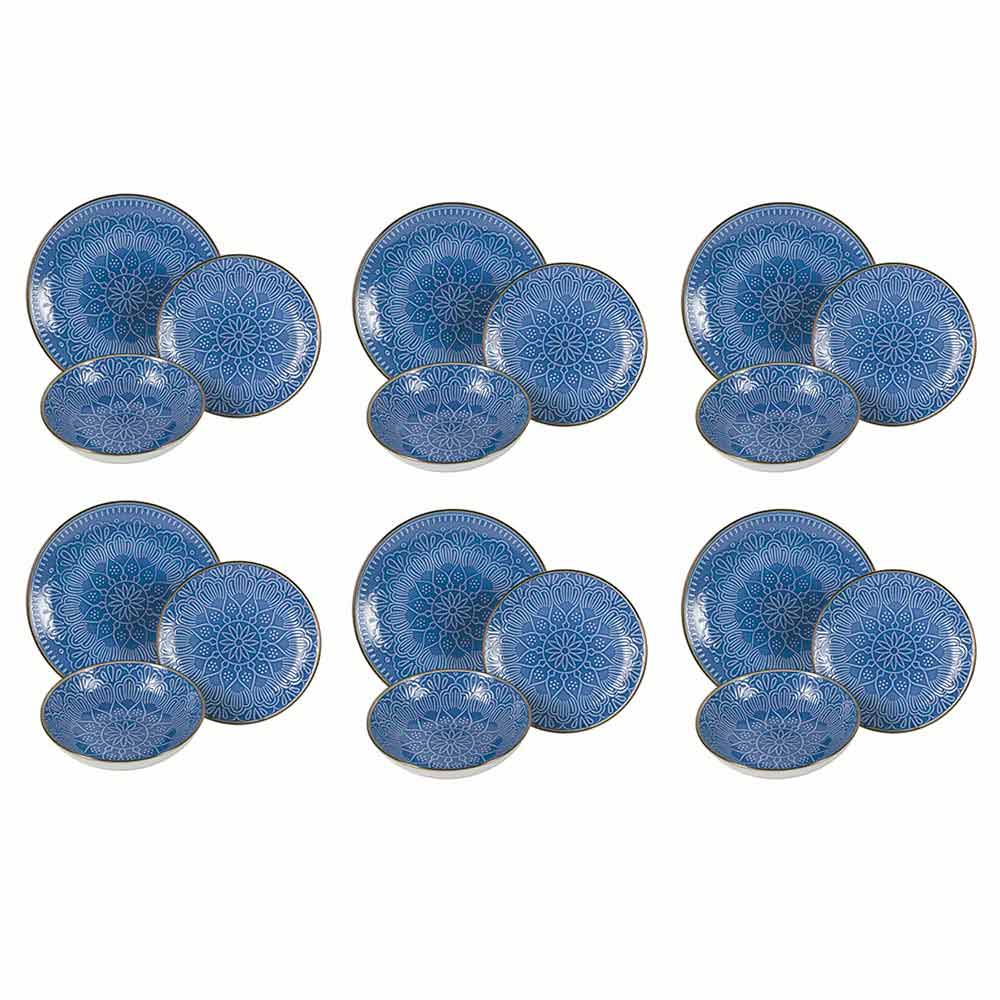 - Služba se skládá ze 6 plochých talířů, 6 talířů na polévku a 6 talířů s ovocem