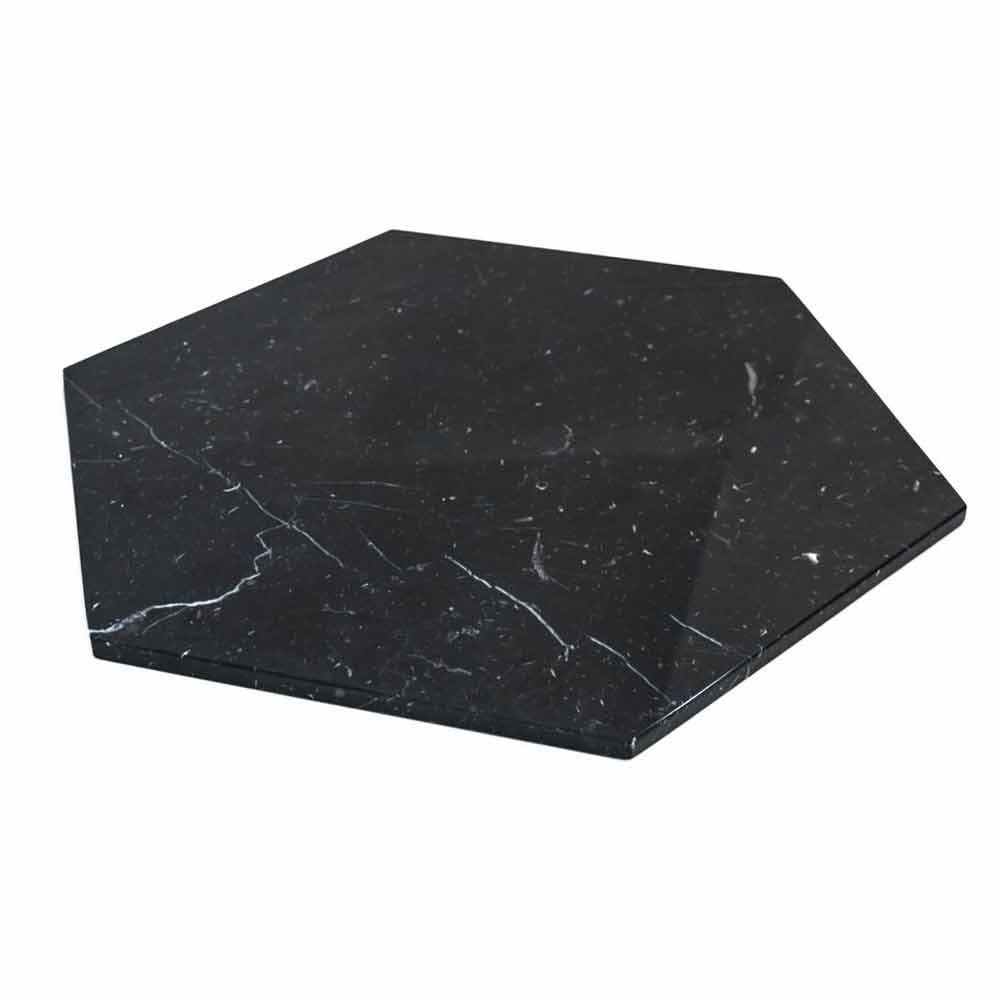 Servírovací talíř se šestihranným designem z bílého nebo černého mramoru, vyrobený v Itálii.