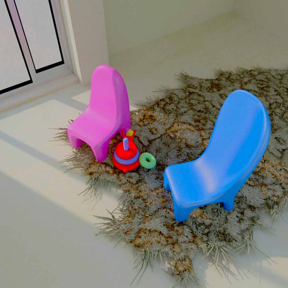 Plastové tvary a jemné na pohled dávají život a dvě dětské židličky, hravé a vtipné, elegantní jako dva malé trůny princů díky kvalitám Solid Surface; .
