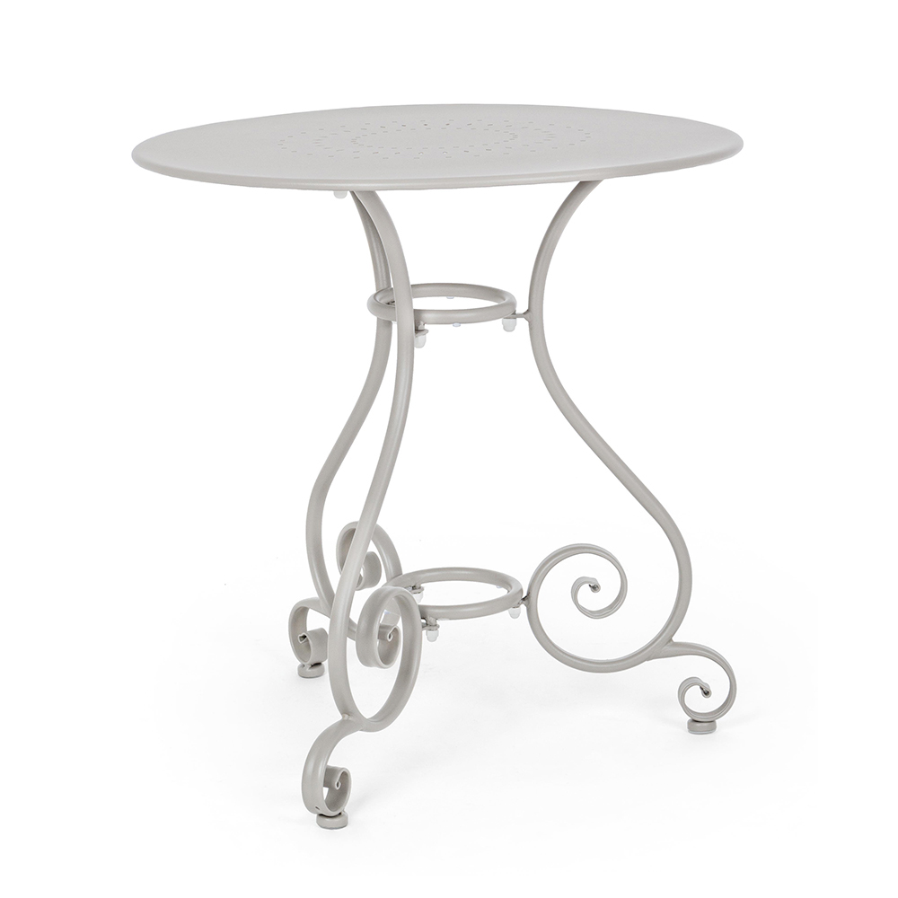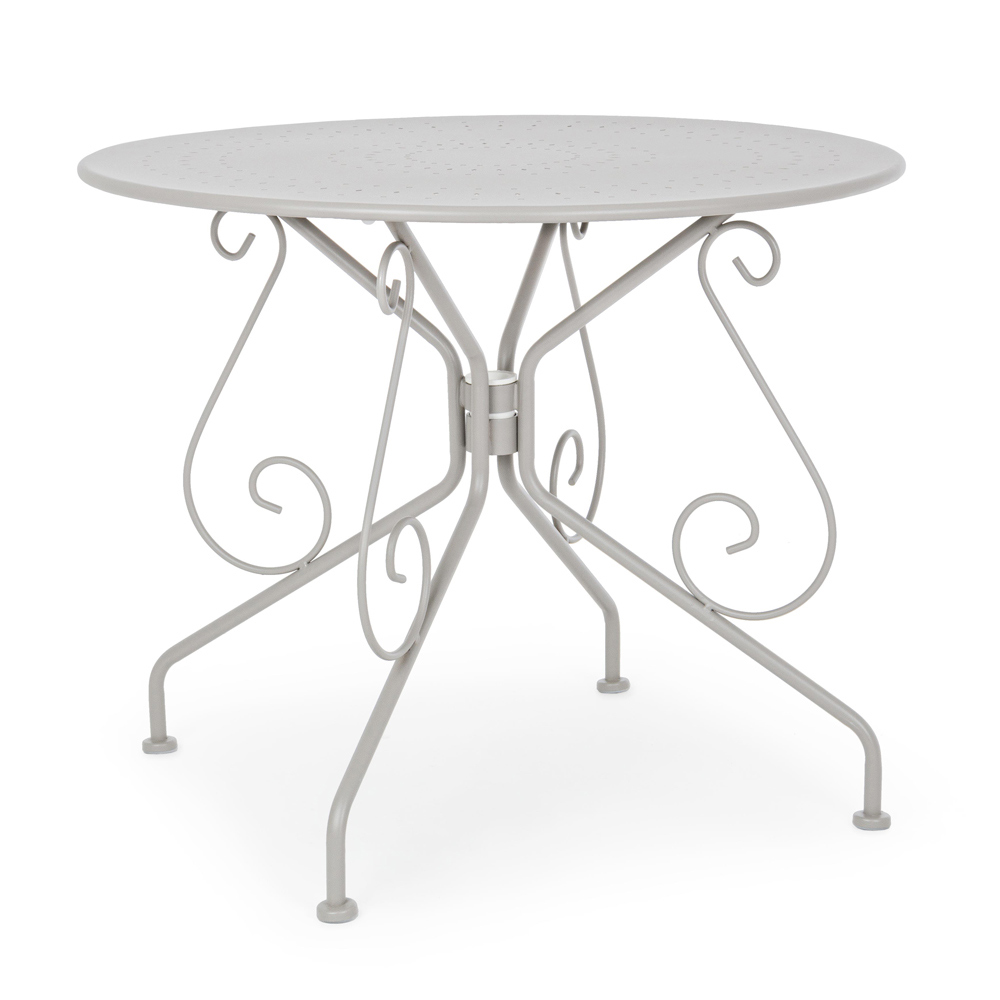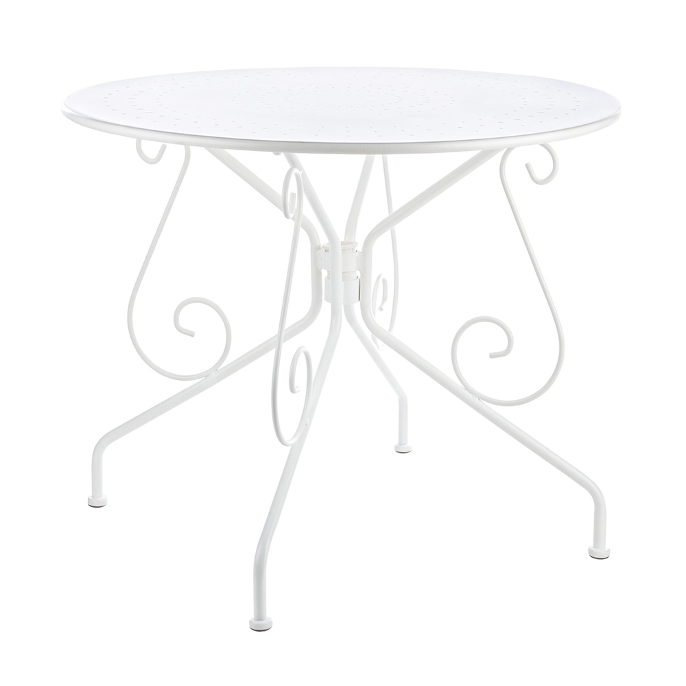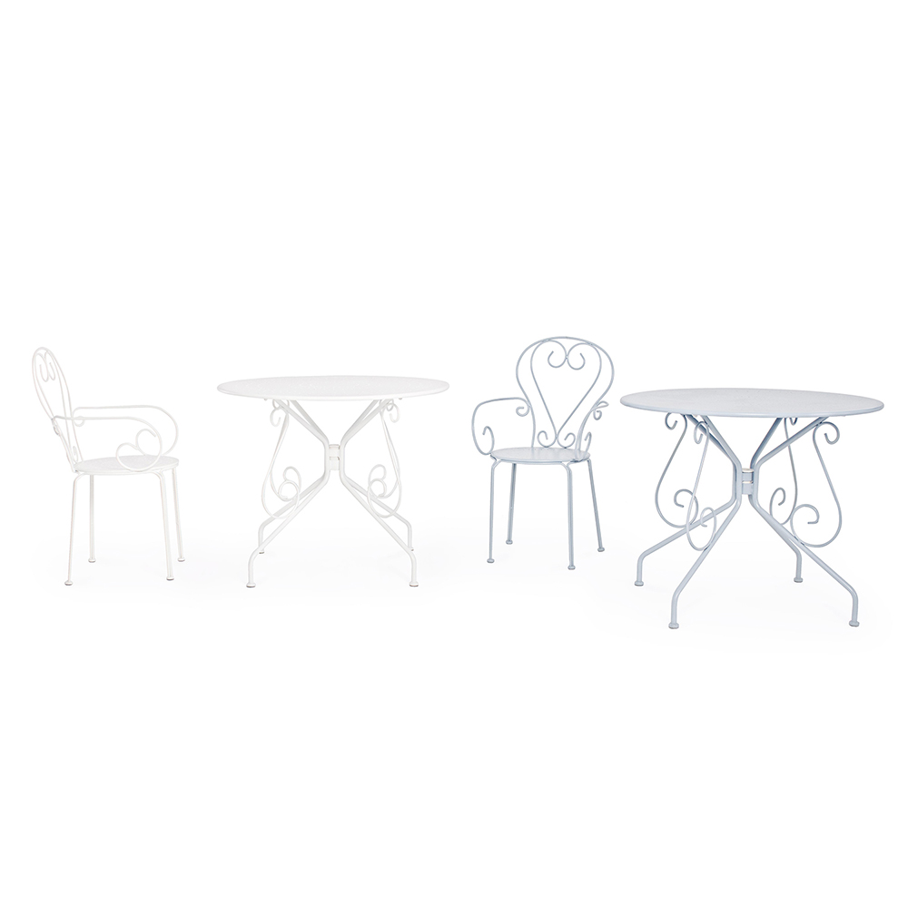 Kulatý stůl pro venkovní styl Shabby Chich z lakované oceli a dostupný ve dvou různých velikostech.