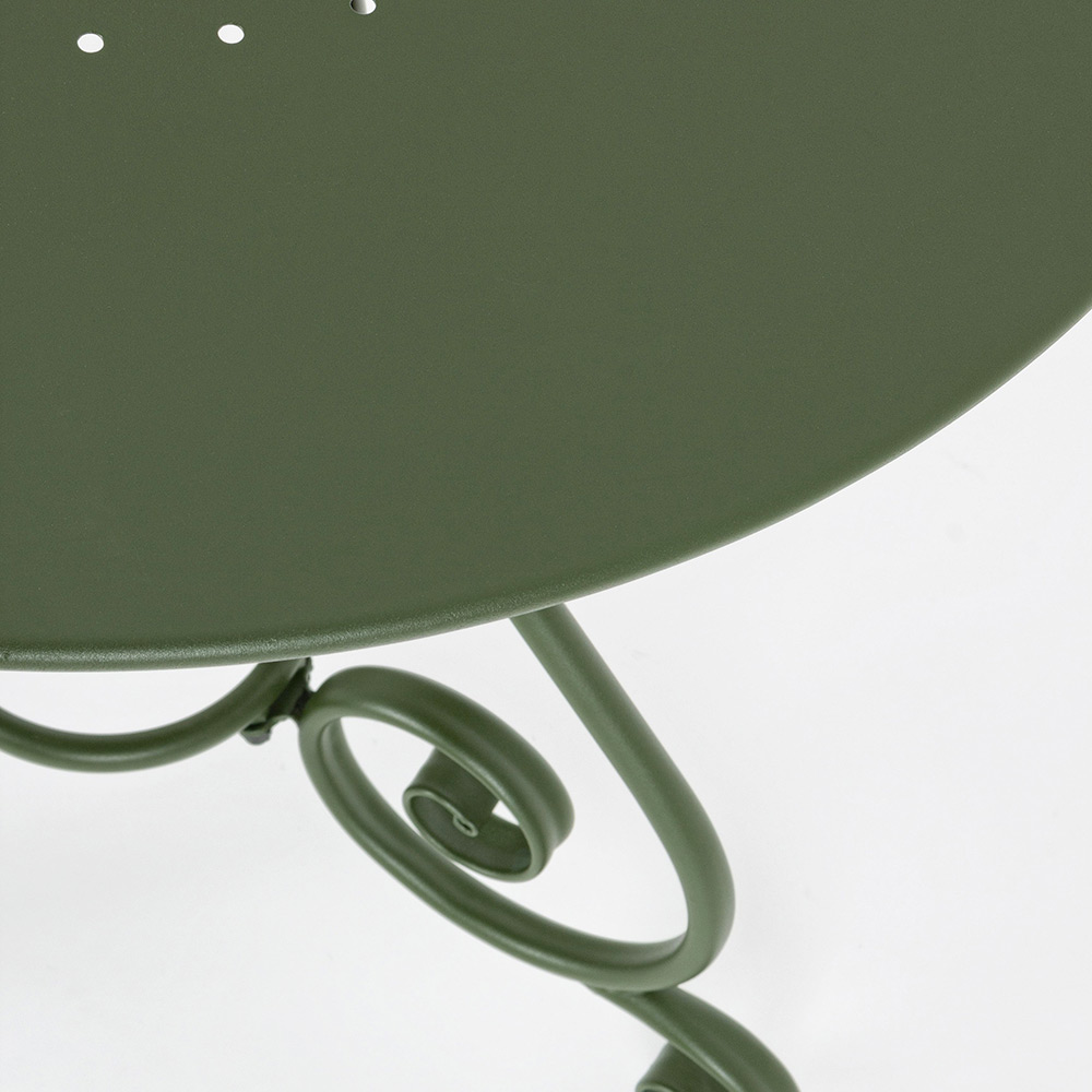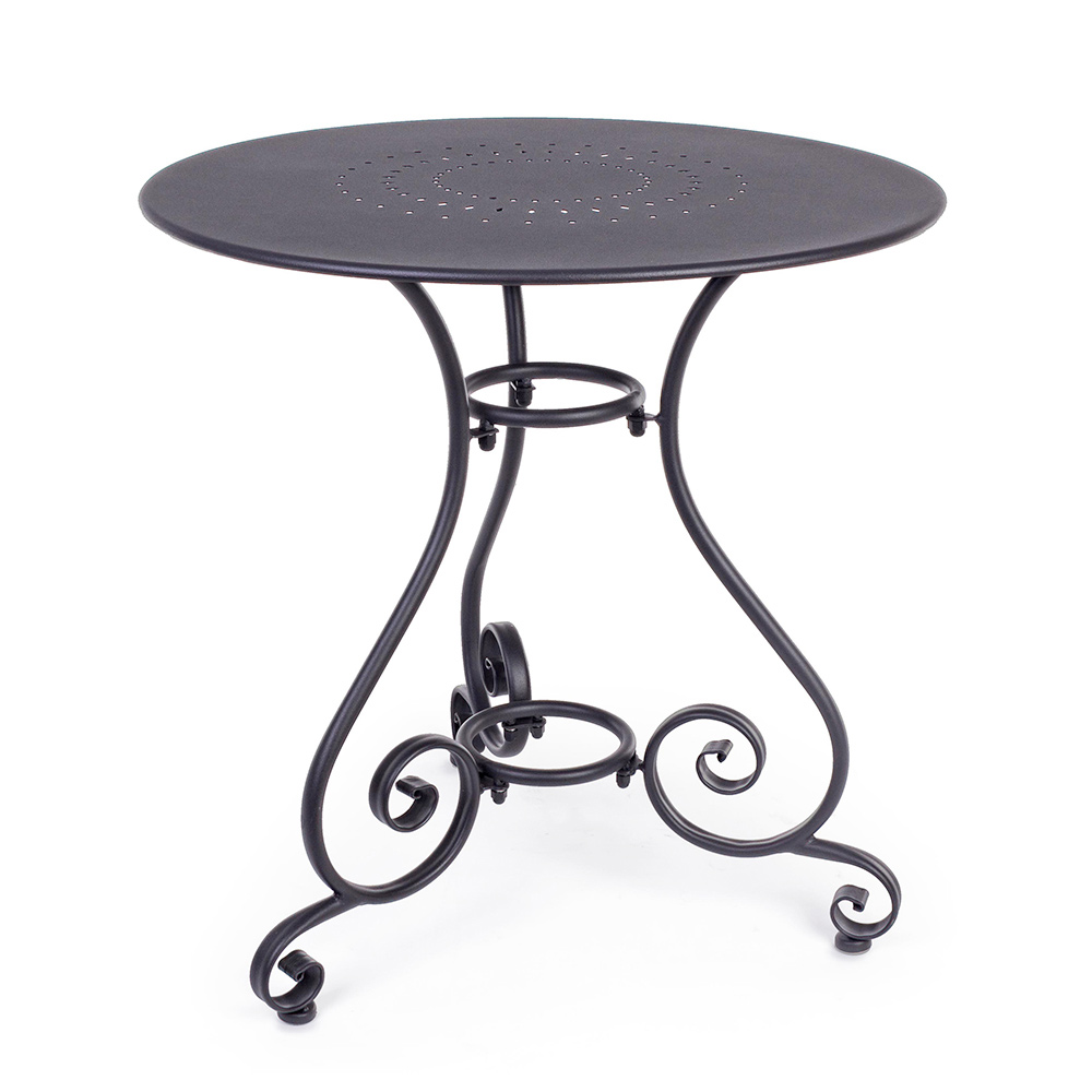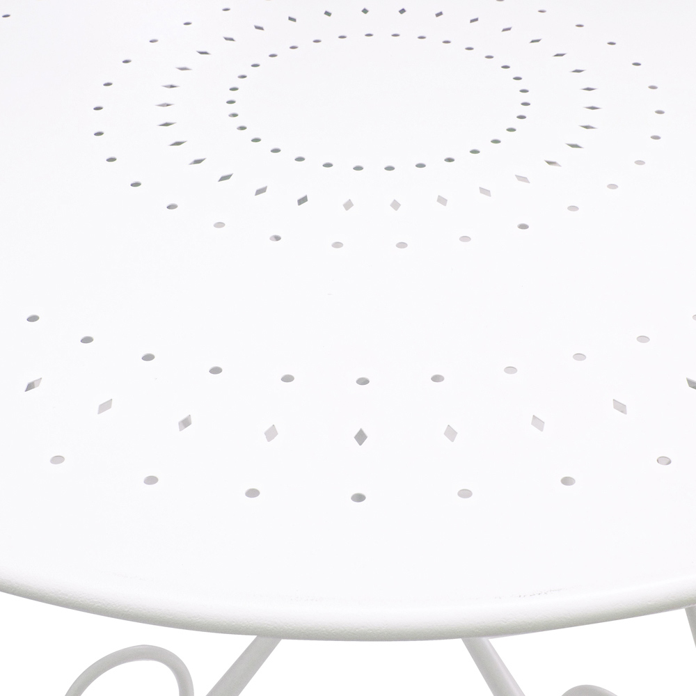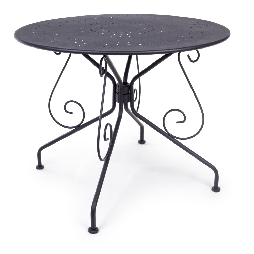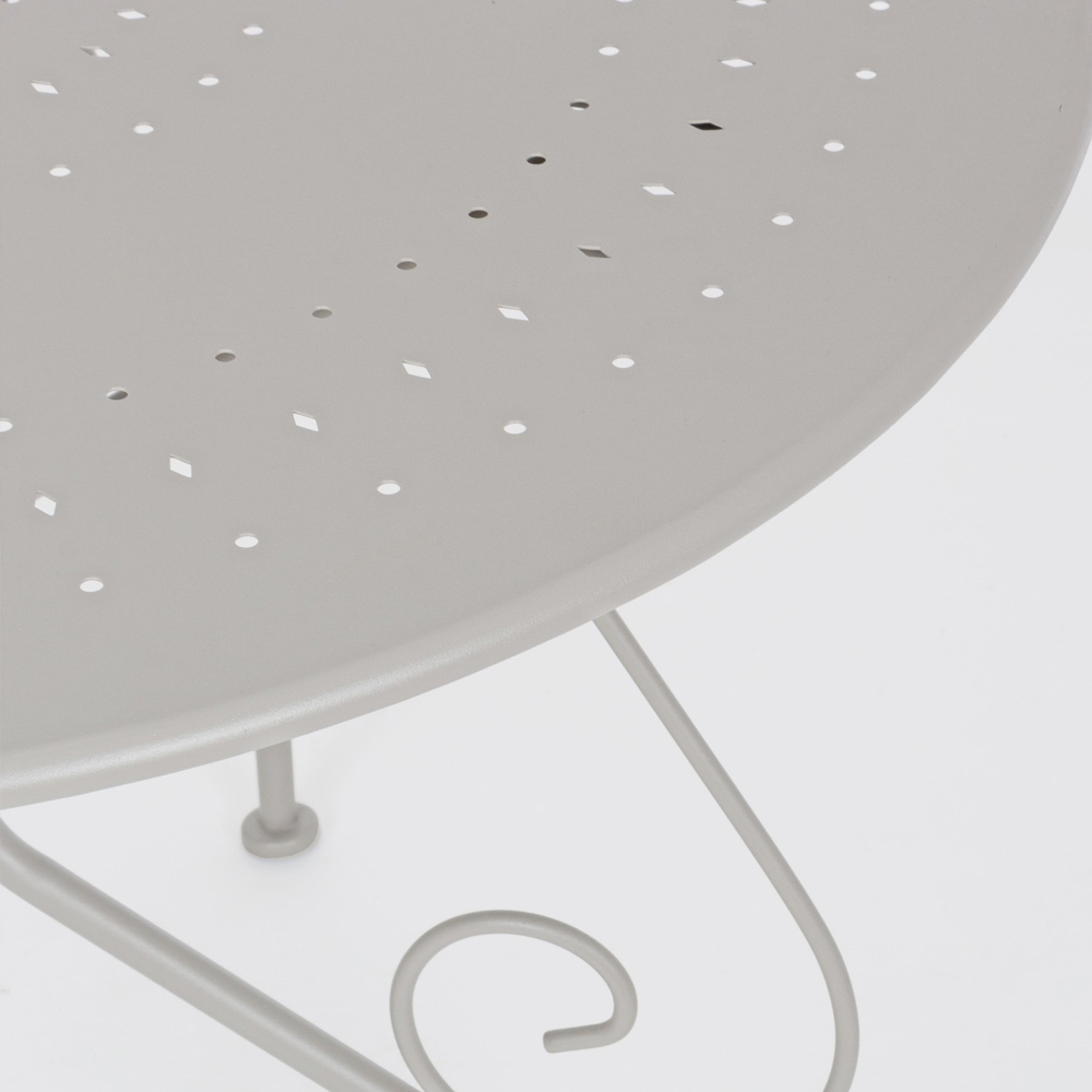 Kulatý stůl pro venkovní styl Shabby Chich z lakované oceli a dostupný ve dvou různých velikostech.