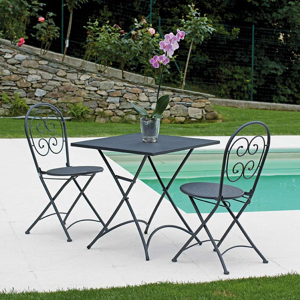Skládací zahradní stůl s deskou a podnoží ze železa s antracitově šedým povrchem . Nábytek vyznačující se jednoduchou a funkční estetikou čtvercového tvaru. Tento aspekt z něj dělá ideální řešení pro ty, kteří rádi tráví volný čas venku a nechtějí se vzdát nádechu exkluzivního a originálního stylu .