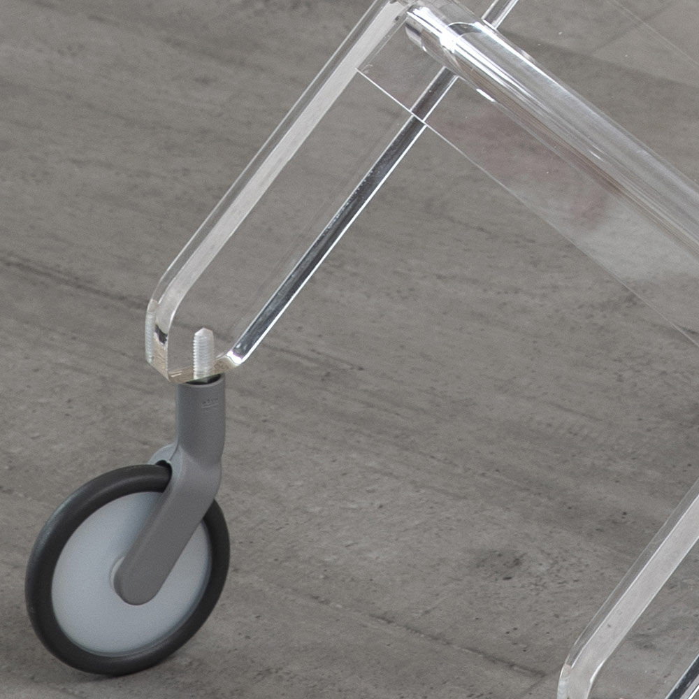 Skládací vozík z průhledného akrylu s designovými kolečky made in Italy.