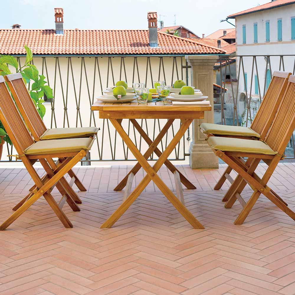Teak je klasifikován jako nejcennější dřevo dostupné pro venkovní nábytek. Je extrémně odolný, stabilní, odolný vůči povětrnostním vlivům, plísním, napadení parazity a hmyzem. Obsahuje vysoké množství přírodních olejů, které ho činí odolným a omezují absorpci vlhkosti. V průběhu času má teakový nábytek vystavený slunci, dešti, vlhkosti atd. obvykle stříbřitě šedou barvu: je to způsobeno procesem povrchové oxidace, který přirozeně chrání dřevo. Tento proces je čistě estetický a nepoškozuje strukturu ani kvalitu dřeva. Vznik oleje na povrchu teakového nábytku je přirozený proces: olej může během prvních měsíců unikat, víceméně důsledně v závislosti na prostředí, ve kterém je nábytek umístěn. Přírodní oleje, které se nacházejí v teaku, z něj dělají to nejlepší dřevo pro venkovní nábytek.