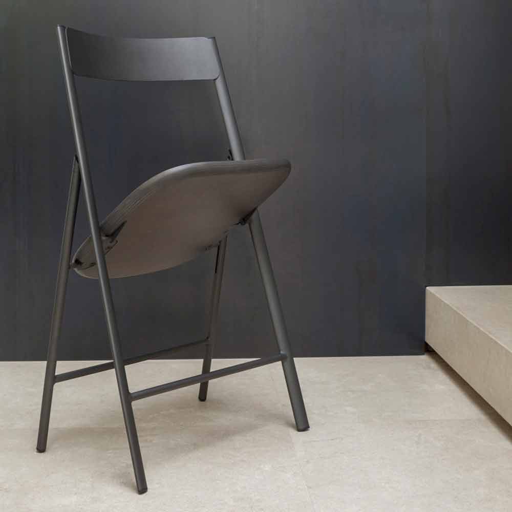 Tato pohodlná židle se vyznačuje jednoduchým a minimalistickým designem, klasicky inspirovaná, funkční a skládací pro maximalizaci prostoru a využití podle potřeby. Díky své esencialitě ji lze kombinovat s různými kontexty zařízení díky střízlivému a rafinovanému designu.