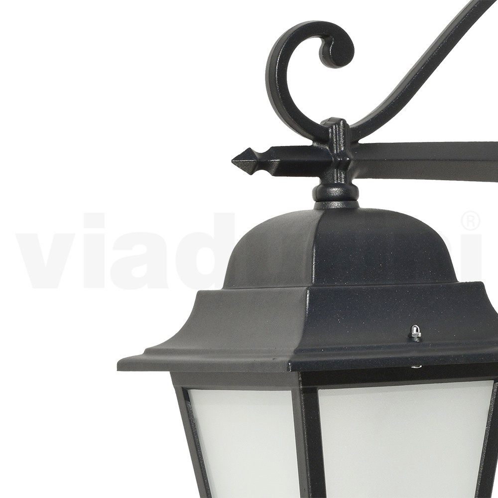 Zahradní lampa vyrobená z tlakově litého hliníku s antracitovou povrchovou úpravou a difuzorem z pískovaného skla , celá vyrobena v Itálii.
