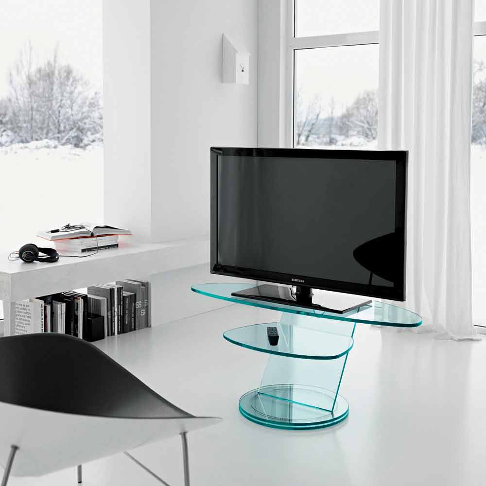 Skládá se z eliptické horní části televizoru a spodní police, zvláštním rysem je otočná základna, která má patentovaný systém ocelových koulí, které umožňují otáčení základů , pro maximální design a praktičnost.