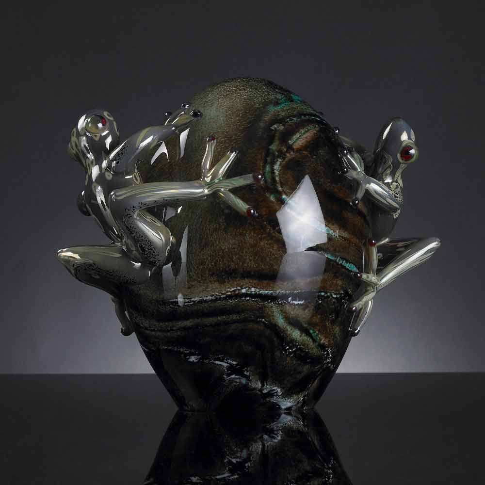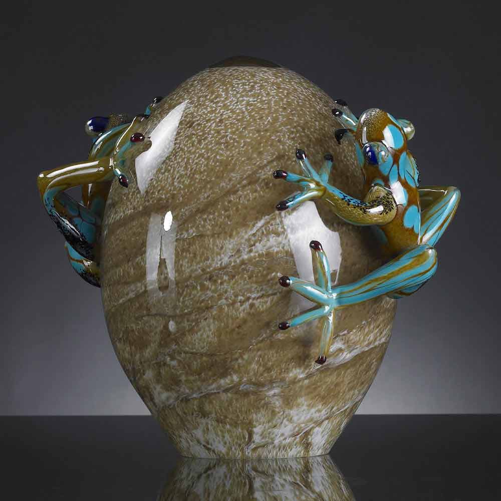 Dekorativní socha ve tvaru žab na vejce vyrobená v Itálii v