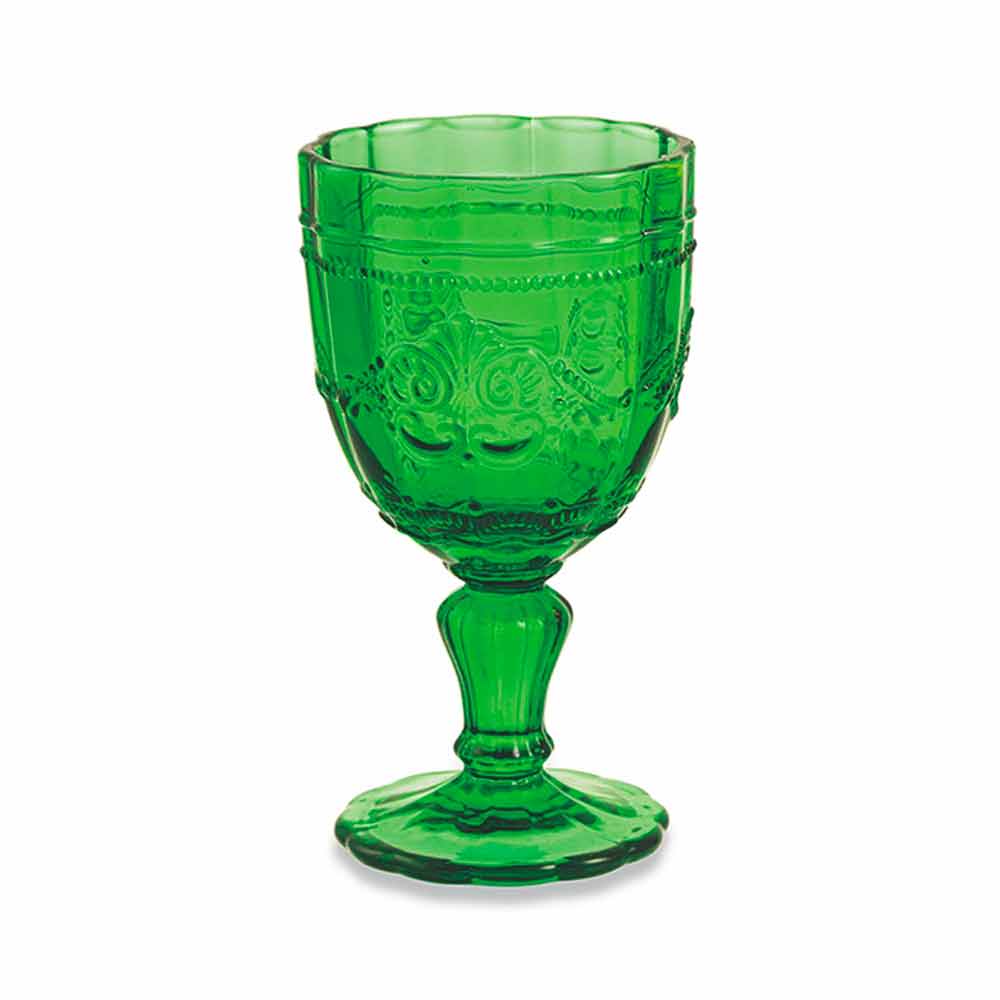 Barevné sklenice na víno vyrobené ze skla různých barev a arabeskových dekorací, 12 kusů.