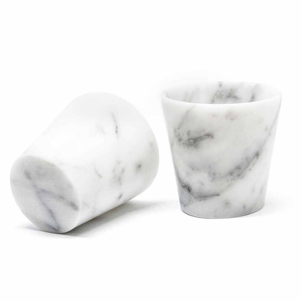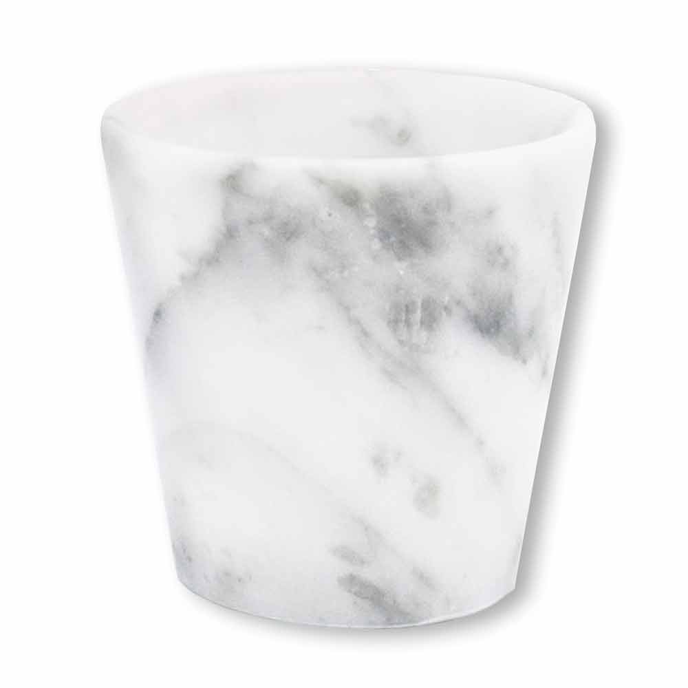 Sklo pro grappu z bílého saténového mramoru Carrara zcela vyrobeno v Itálii.