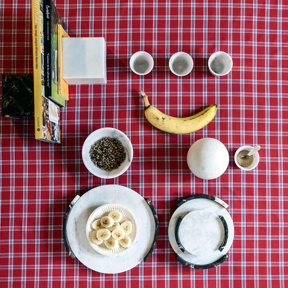 Sklo Grappa charakterizované bílým mramorem Carrara vysoká kvalita použitá k jeho výrobě. Jedná se o jedinečný kus, protože každý blok mramoru je odlišný v žilách a odstínech. Mramor použitý k realizaci produktu pochází z lomu Poggio Silvestre, který je zdrojem prvotřídního bílého mramoru klasifikovaného od minulého století.