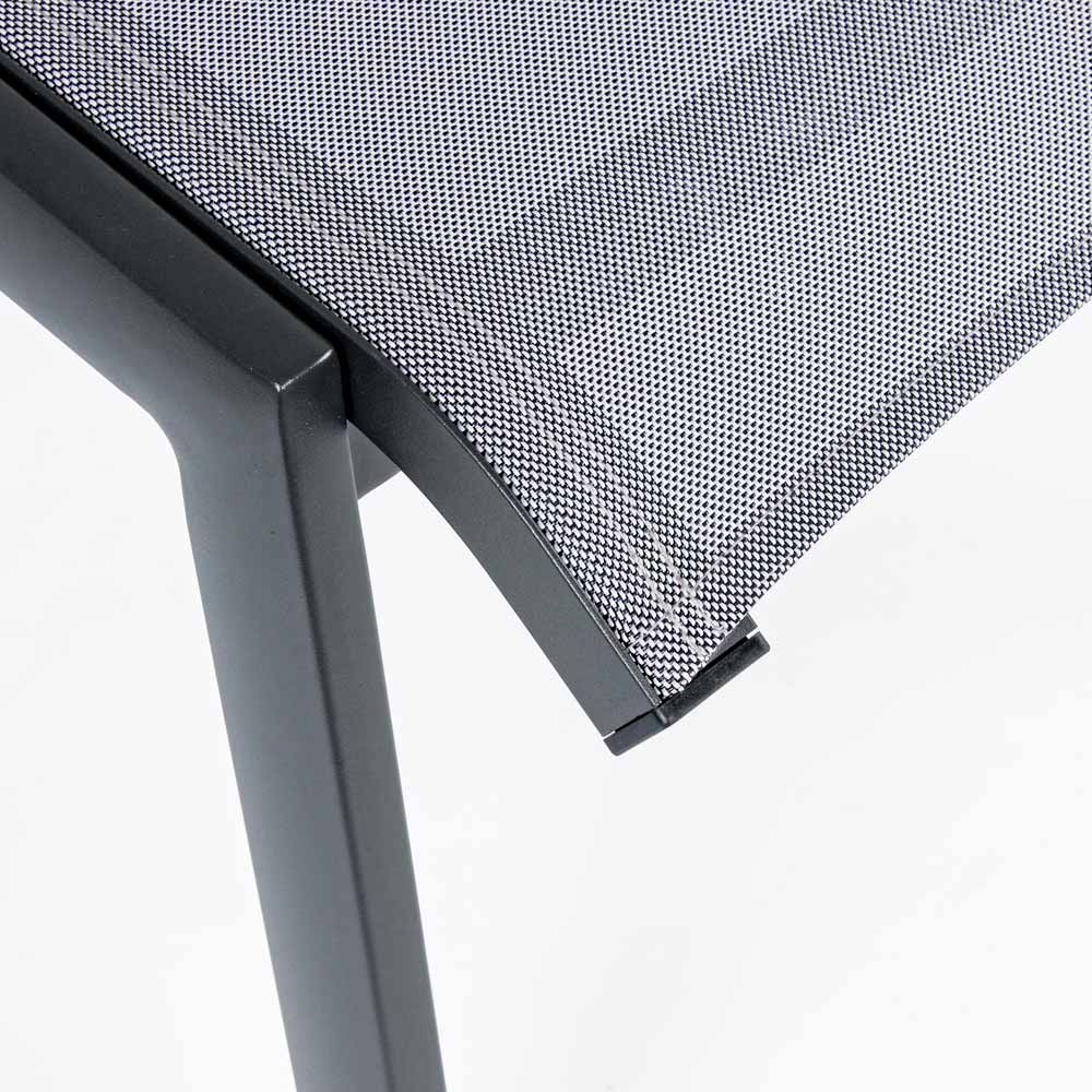 Skládací venkovní křeslo z hliníku a textilu.