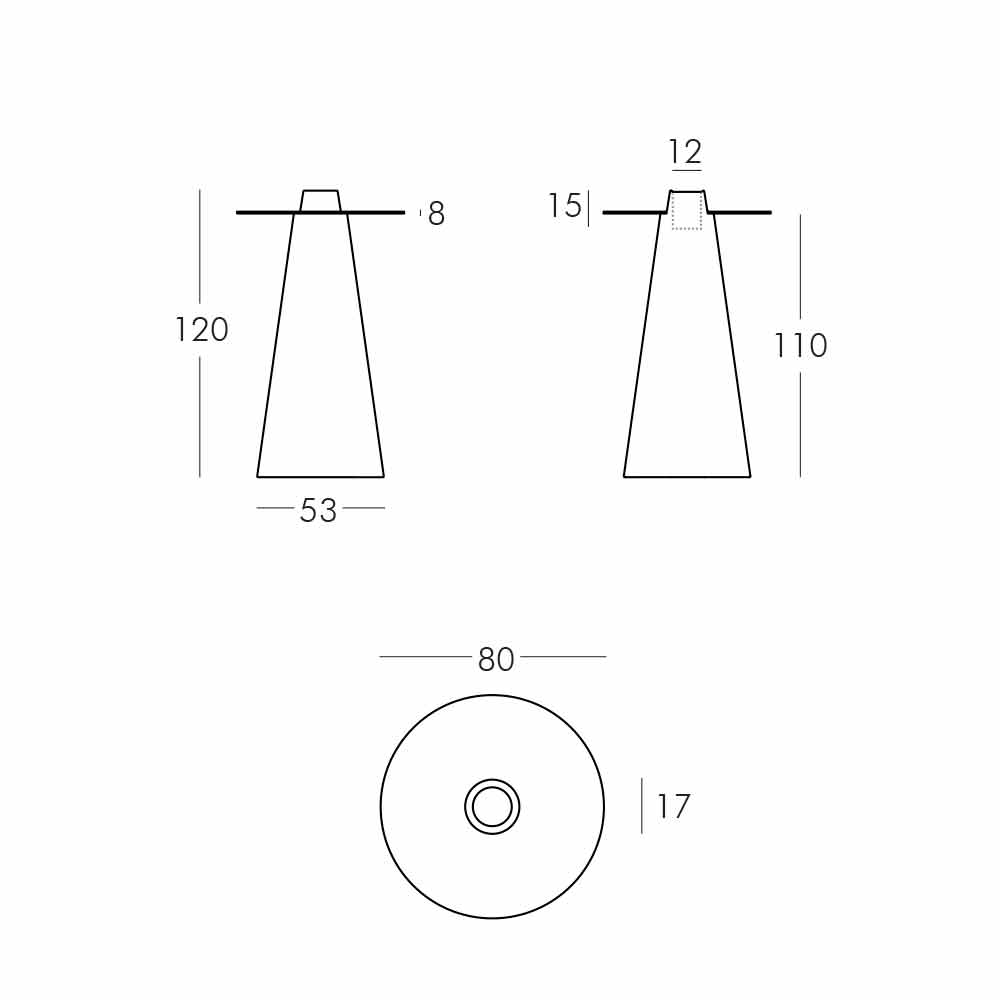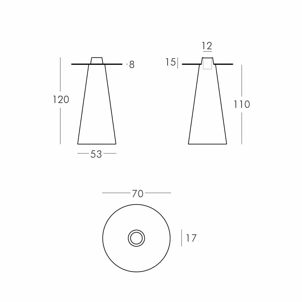Skládá se z kónického polyetylenového podstavce a kruhové desky z tvrzeného skla. Není lhostejnou zvláštností středová přihrádka na láhev, detail, který může při zvláštních příležitostech znamenat rozdíl.