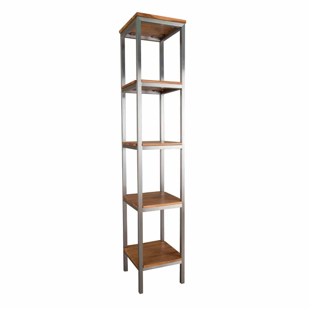 Sloupová koupelnová skříňka z teakového dřeva se 4 policemi.