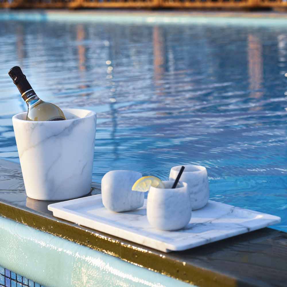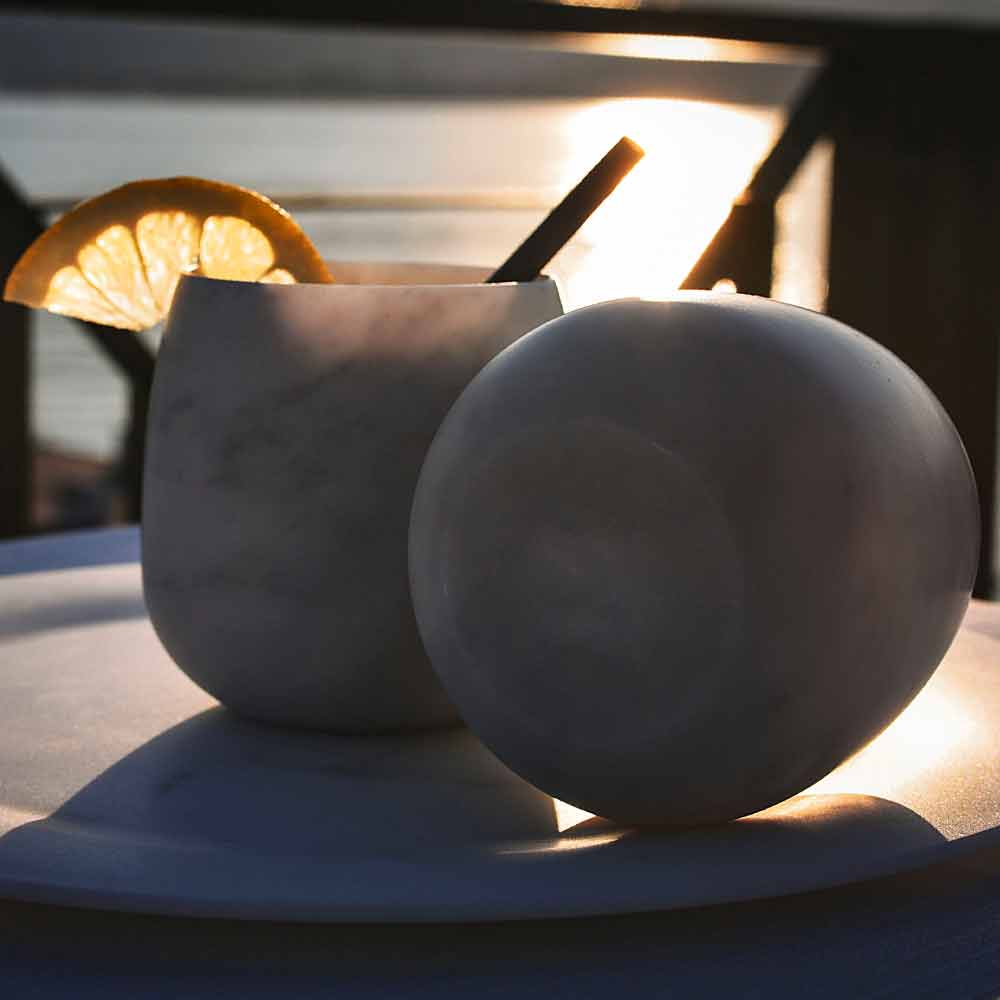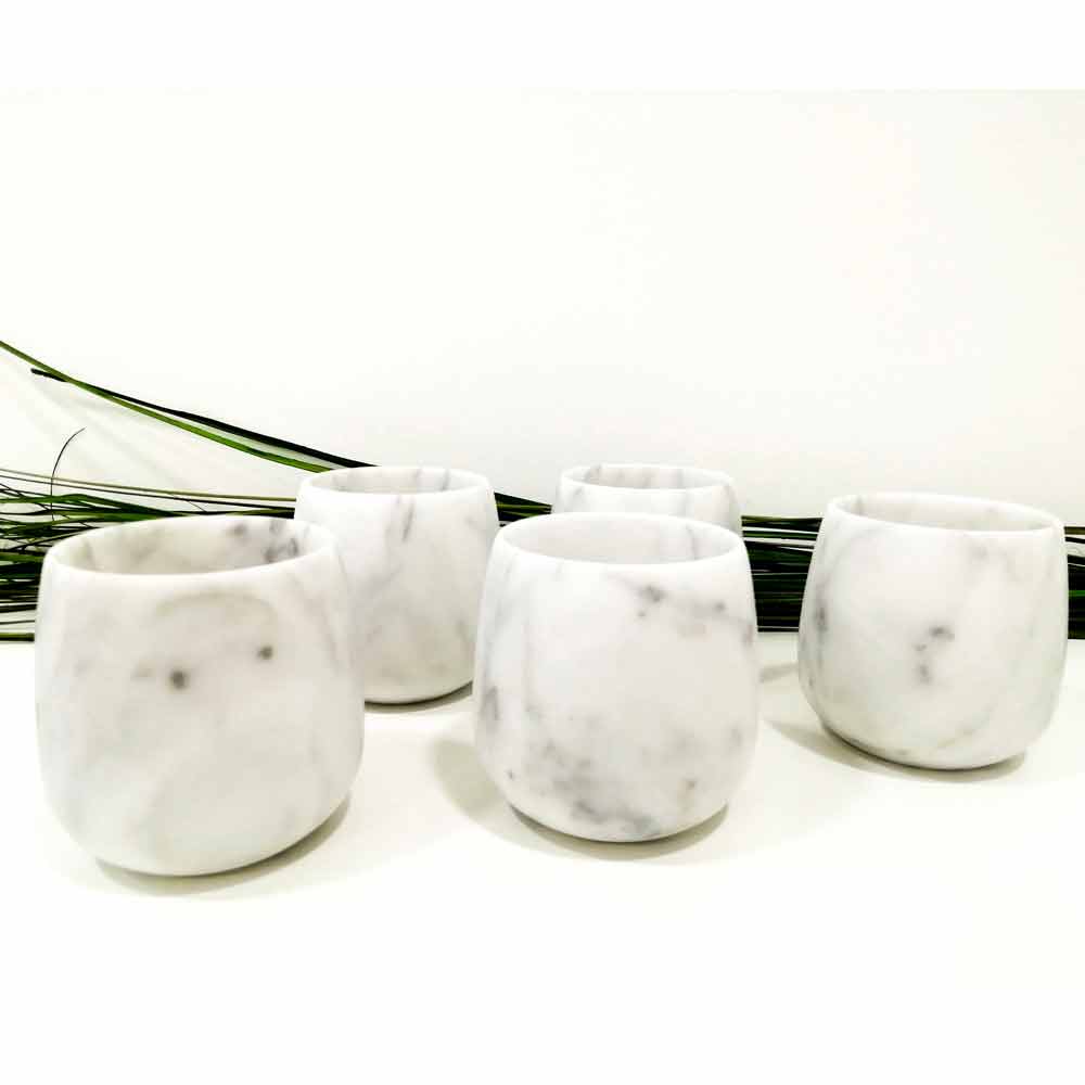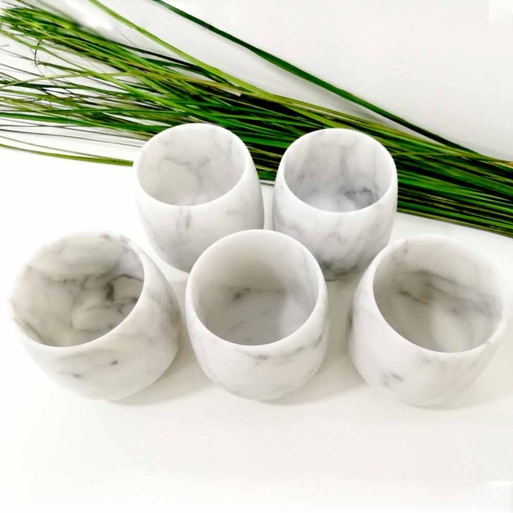 Pozn . : kvůli charakteristické pórovitosti mramoru se nedoporučuje nalít do nich barevné nápoje, aby se co nejlépe zachoval přirozený bílý odstín mramoru.