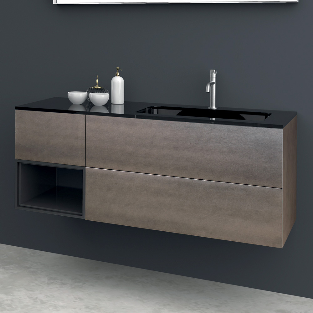 umyvadlový podstavec se 2 zásuvkami a otevřenou boční polici se zásuvkou nahoře a elegantní a rafinovanou