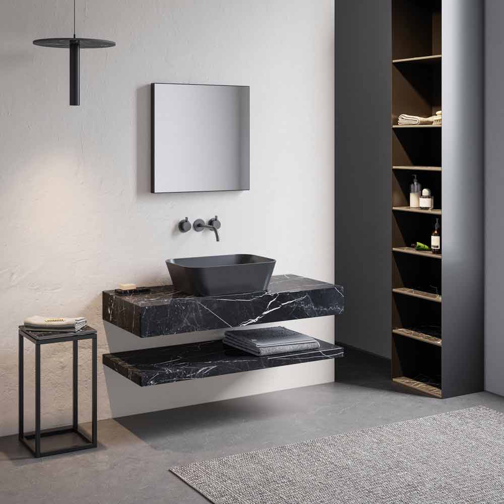 Dostupné povrchové úpravy:- kalacatta s bílým umyvadlem