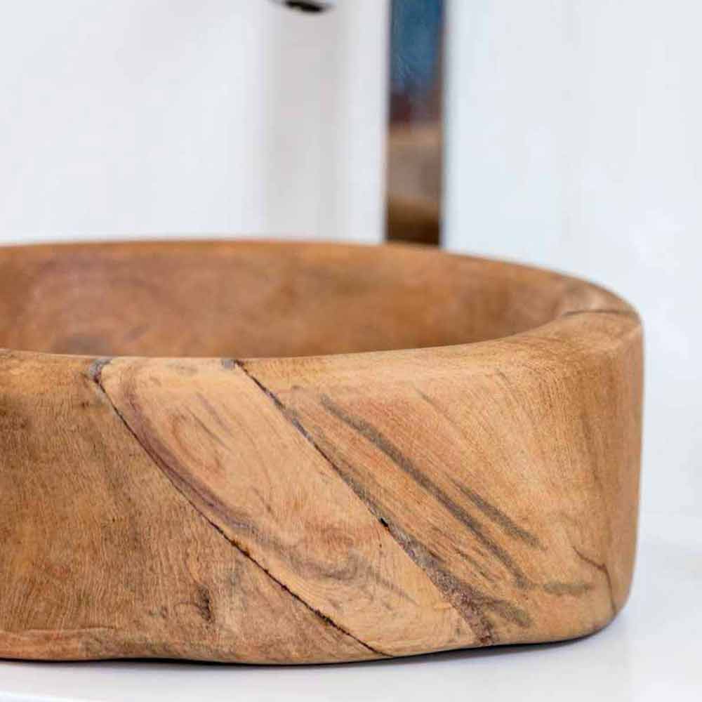 Umyvadlo na desku z hladkého a neošetřovaného přírodního teaku.