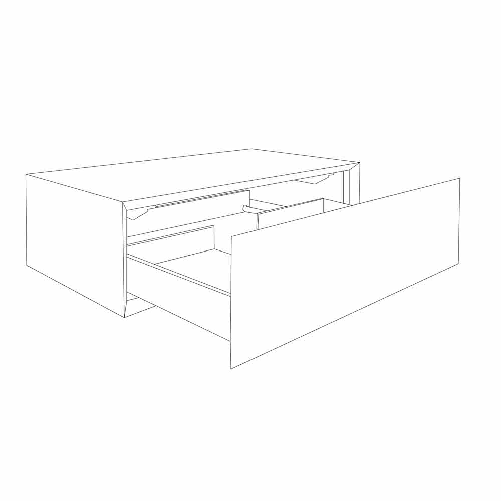 deska z přírodního akrylového kamene - Hi Macs® s masivní zásuvkou z teakového dřeva, zavíráním push / pull a předispozicí pro centrální odtok. Dodáváno s držáky a šrouby pro upevnění na stěnu. Otvor pro závitník lze jednoduše vyrobit „na místě“ běžnou vrtačkou.
