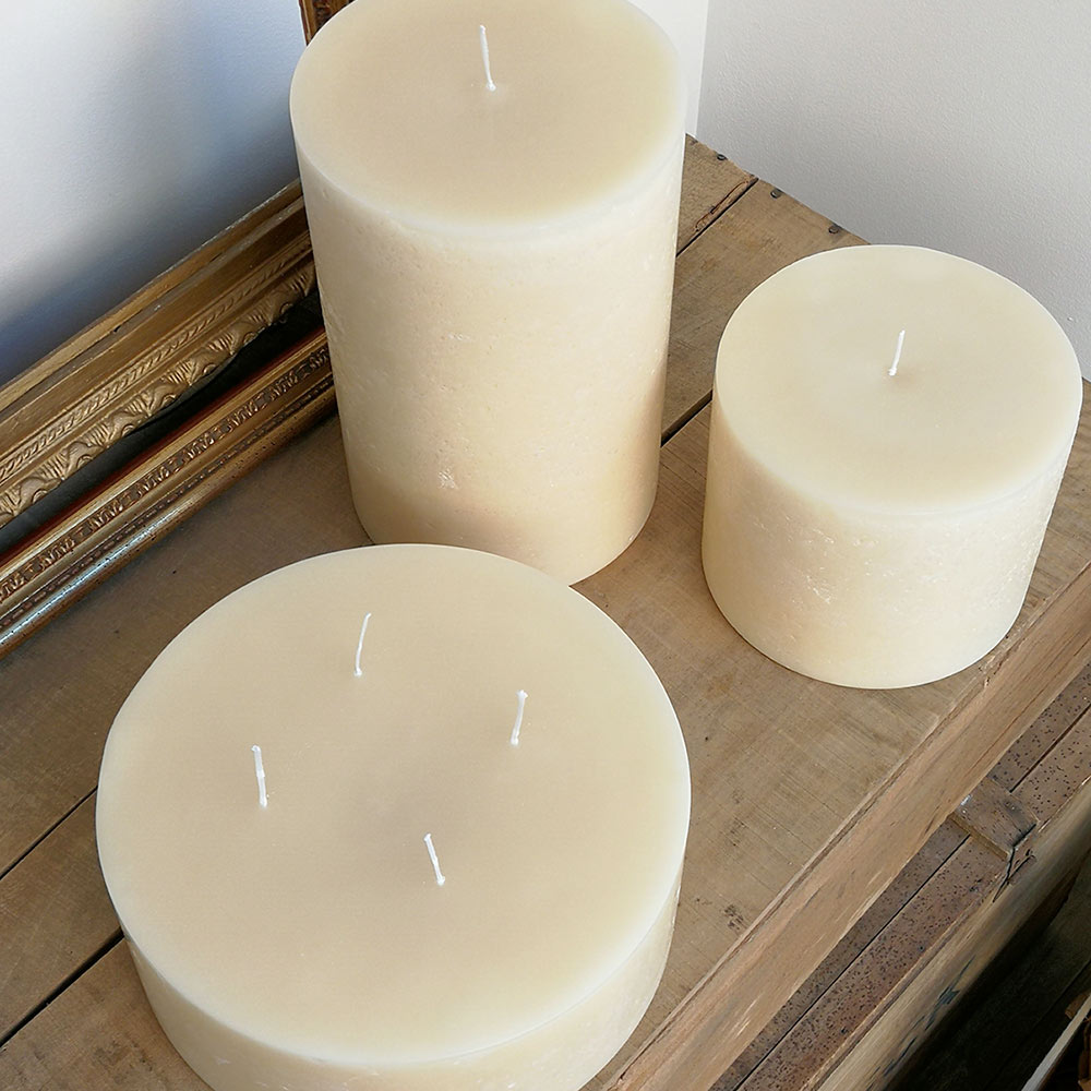 Moderní složení, které zahrnuje tři voskové svíčky různých velikostí navržené a