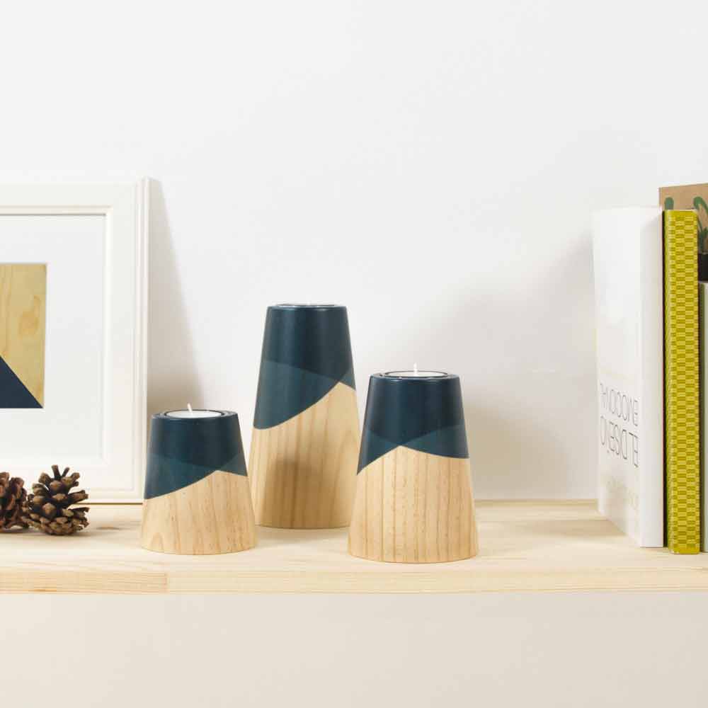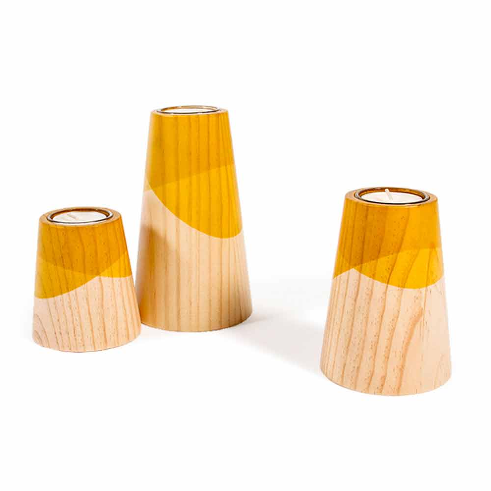 Složení svícnů z masivní borovice s mořeným detailem, 3 kusy.