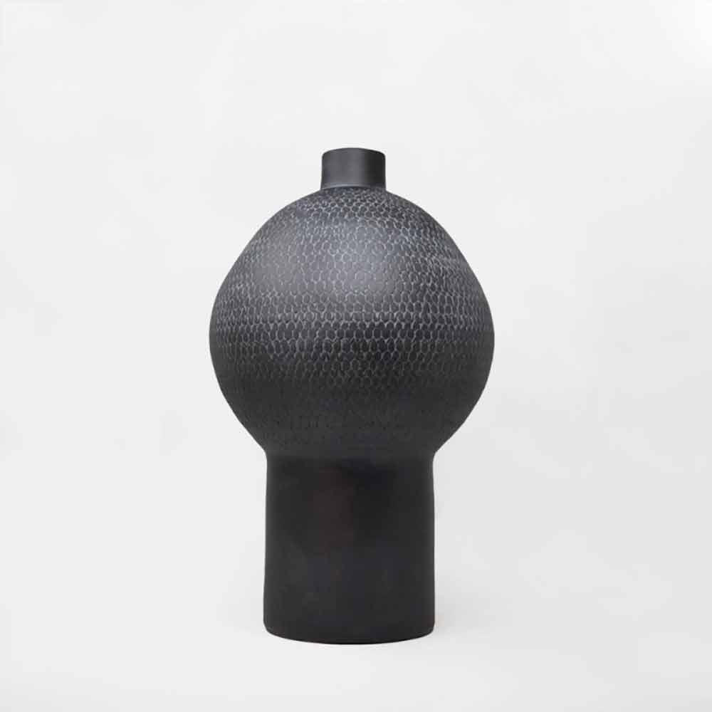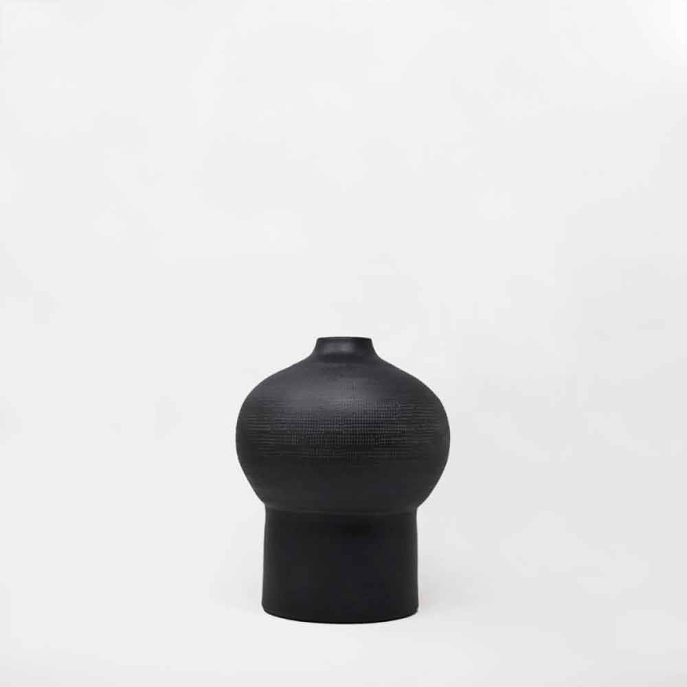 Složení dekorativních váz v černé a bílé keramice.