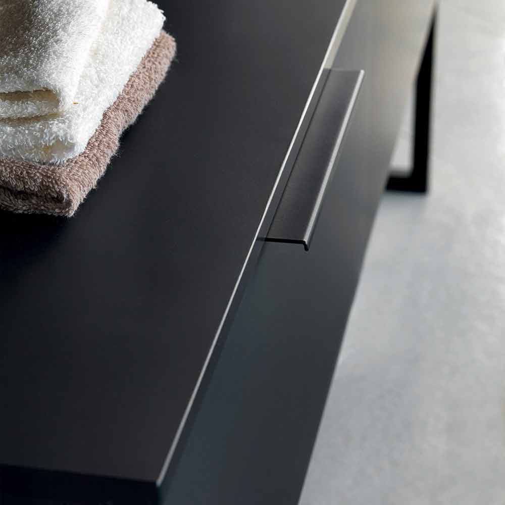 Skříňka pod umyvadlo obsahuje dvě zásuvky v matně černém fenixu a je podepřena podpěrnými nohami z matného černého kovu.