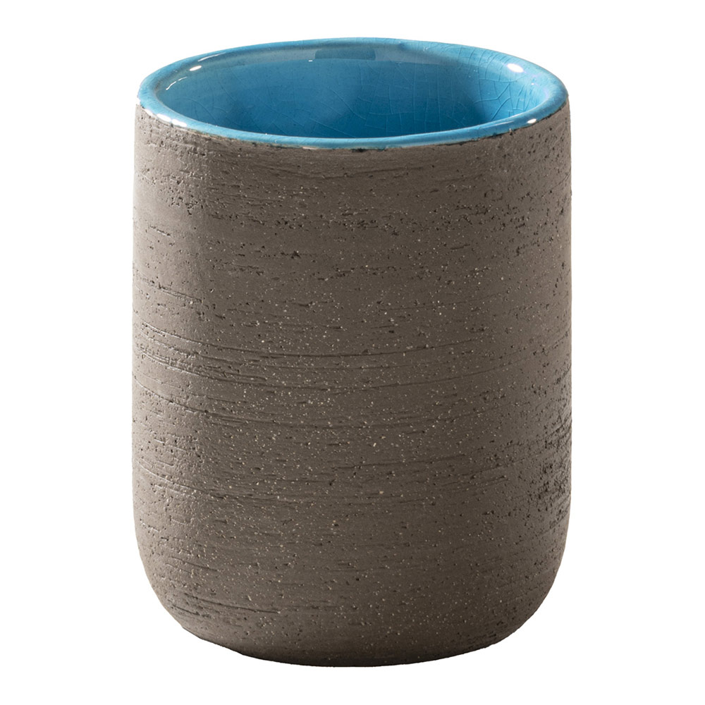 Kompozice koupelnového nábytku s nábytkem z přírodního teaku a hliněným umyvadlem.