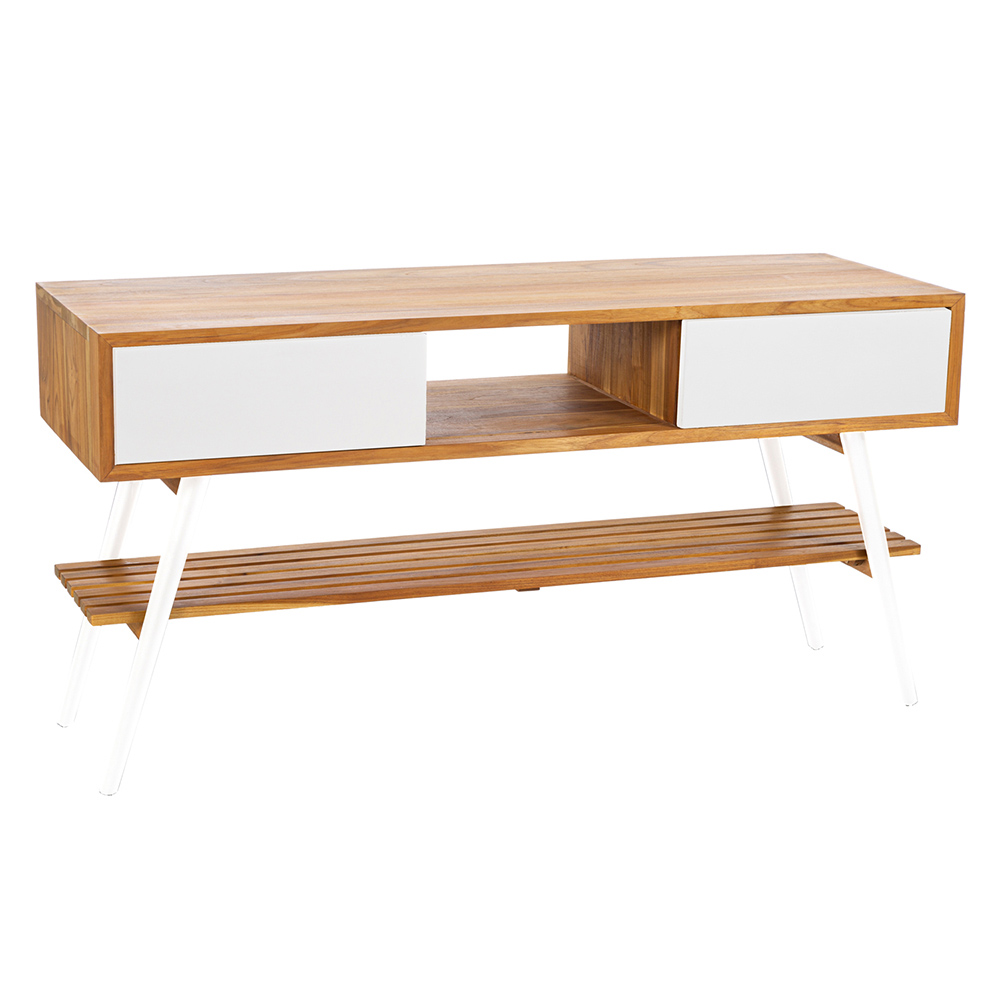 podlahovou skříňkou z recyklovaného přírodního teaku doplněná 2 praktickými zásuvkami z