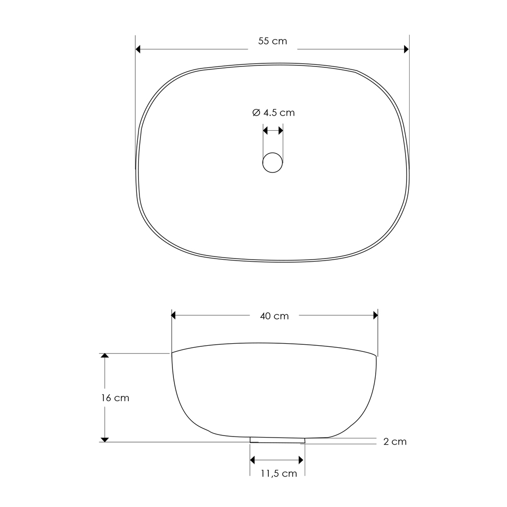 - umyvadlo - D 55 x P 40 x V 16 cm;
