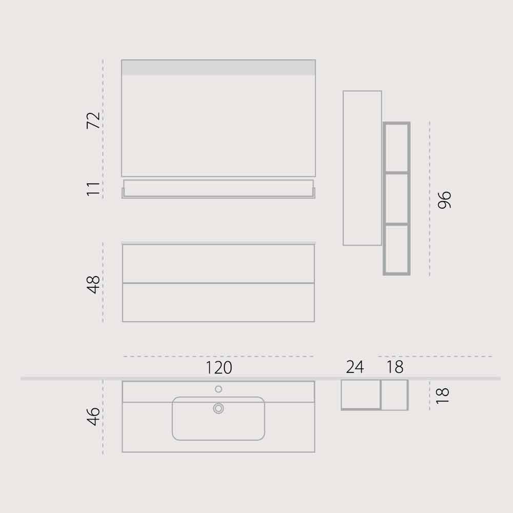 Složení závěsného designového koupelnového nábytku vyrobeného v Itálii, Bari