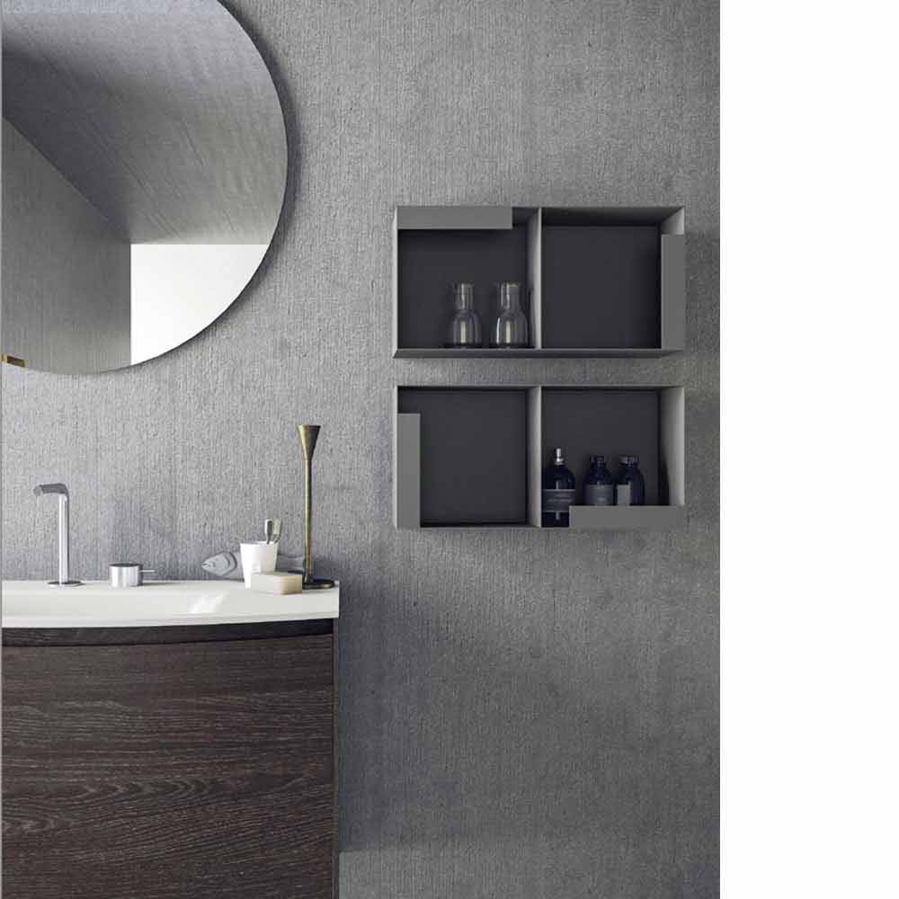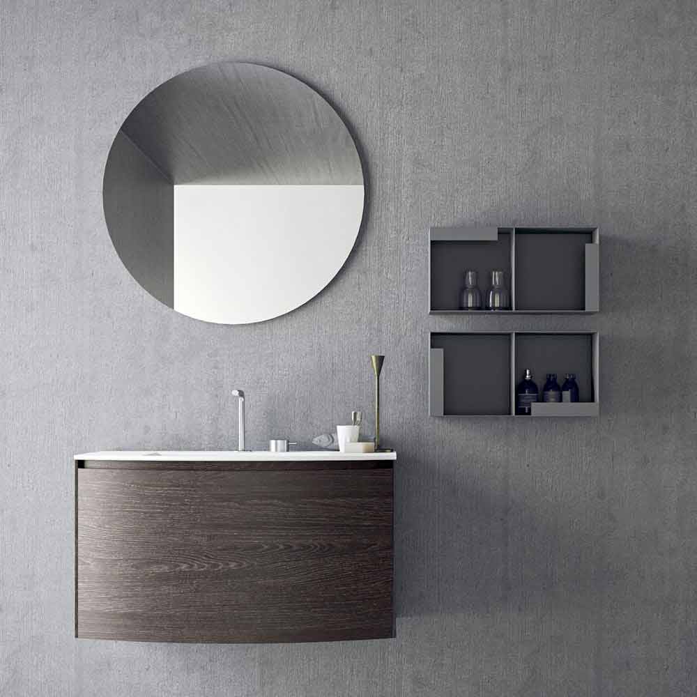 Moderní koupelnová kompozice, zavěšený a minimalistický design s integrovaným umyvadlem, vyrobený v Itálii.