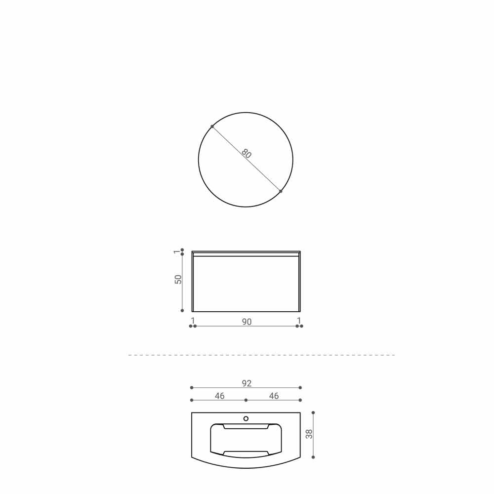 Zvláštnost této kompozice je dána zabudovaným umyvadlem, které se vyznačuje dvěma bočními stranami, které jemně sestupují směrem k pánvi.