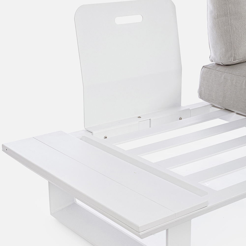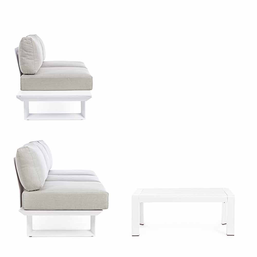Složení venkovního obývacího pokoje z hliníku s odnímatelnými polštáři, kvalitní výrobek.
