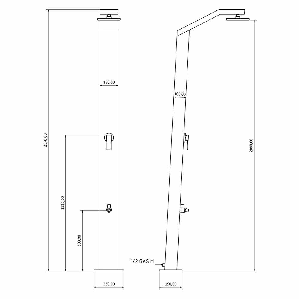Venkovní solární sprcha vyrobená v Itálii se sloupem z